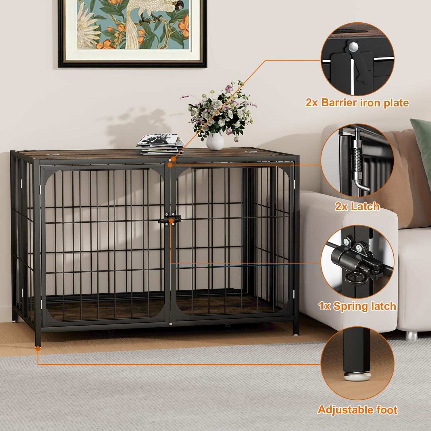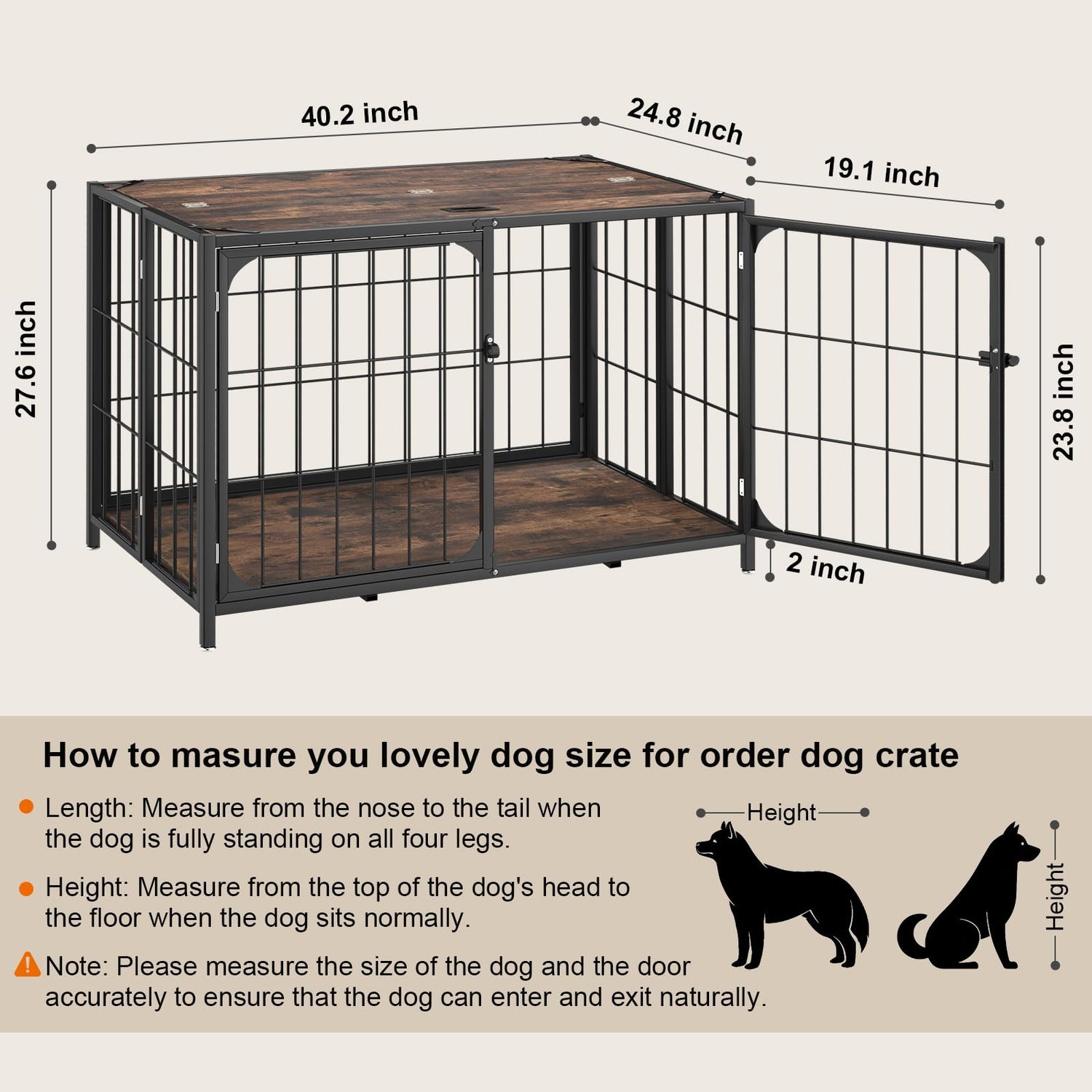 Himix Dog Crate Furniture, XL Dog Crate Furniture for Large Medium Dogs, Wood Dog Crate Table with Sturdy Metal, Heavy Duty Dog Kennel Indoor 40.15''x 25''x 27.56'' (Rustic Brown)
