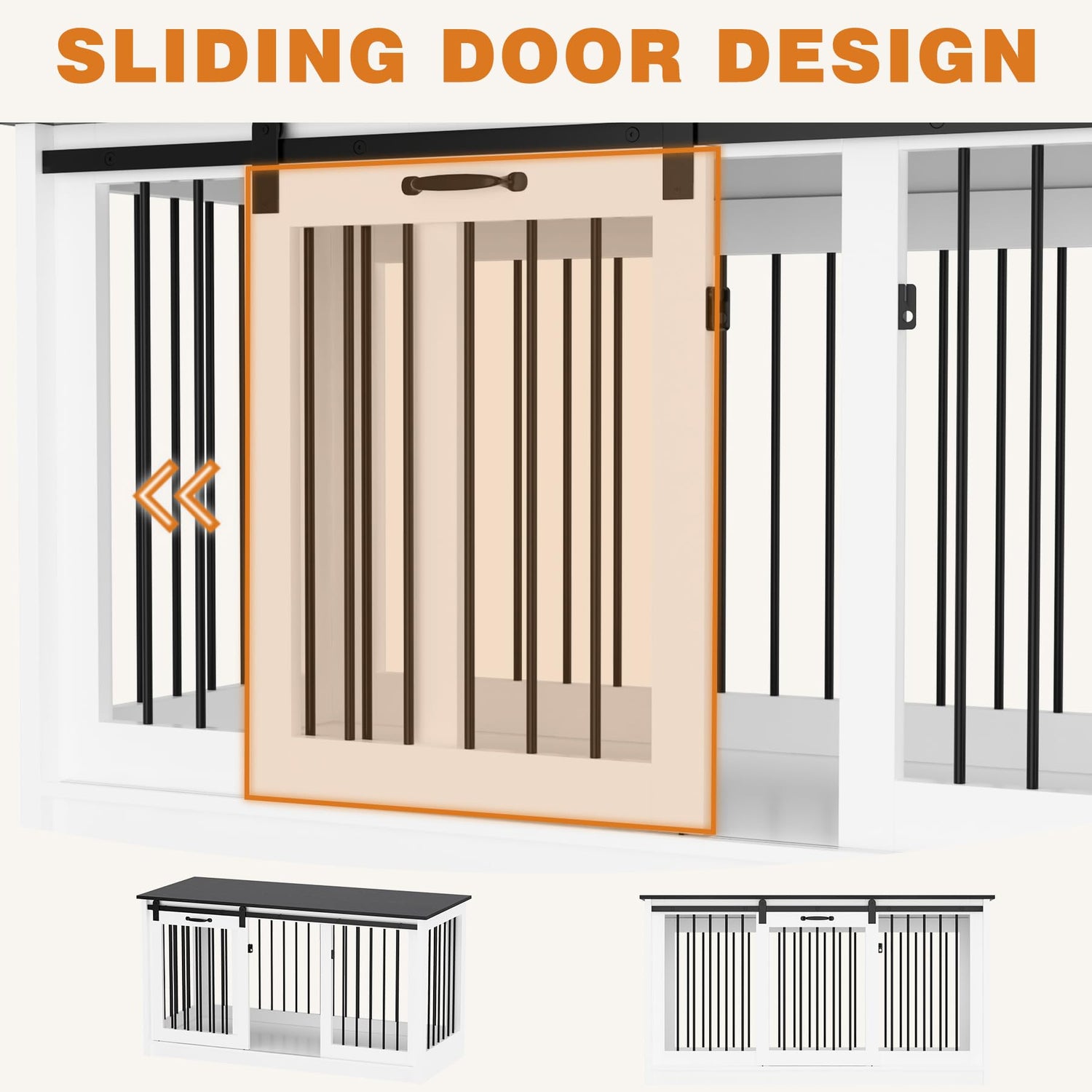 - 🌈【PRACTICAL】This dog house is equipped with a safety latch lock, preventing dogs from easily opening and escaping through the sliding door. The high-quality barn door track allows for smooth door movement and maximizes space savings. The durable iron bars on the sides ensures proper ventilation and allows dogs to observe their surroundings from all angles, increasing their sense of security.