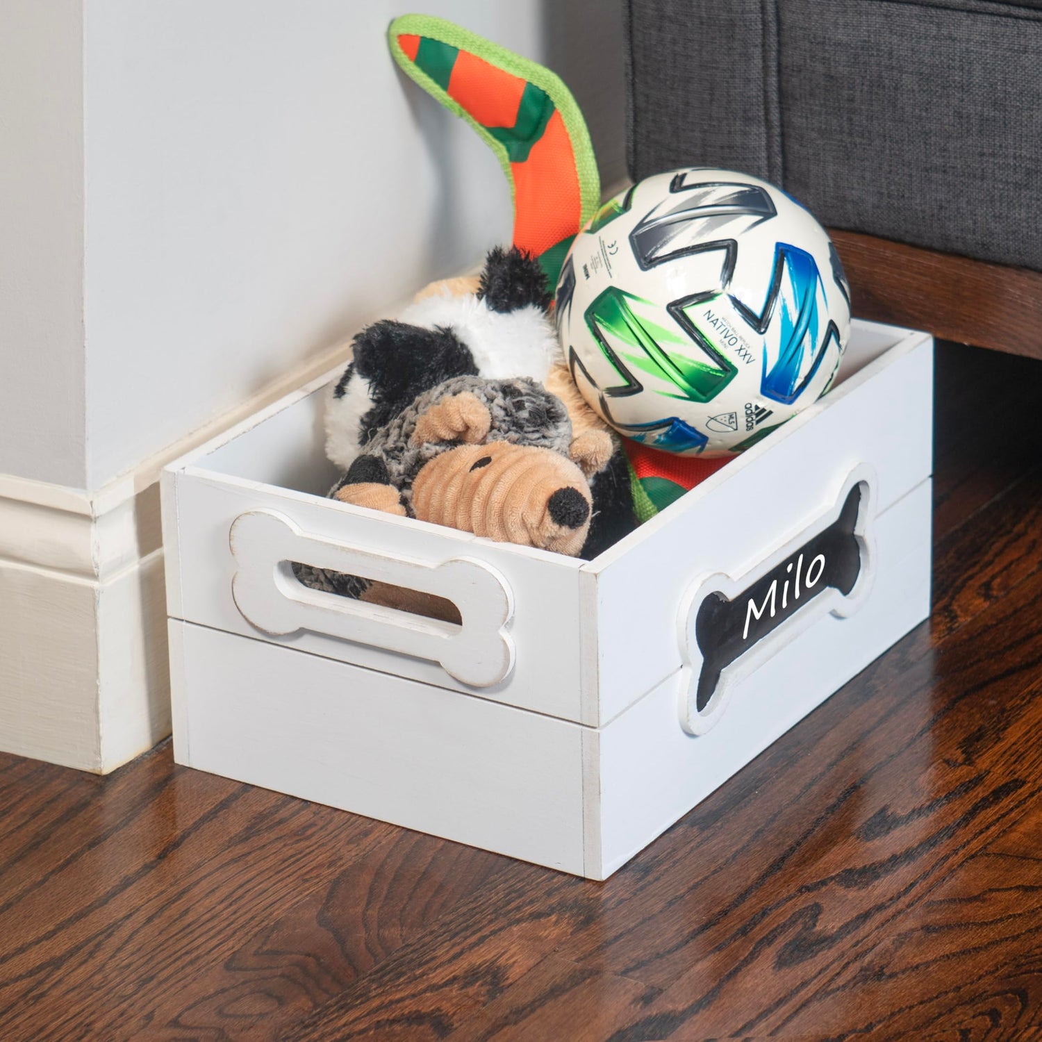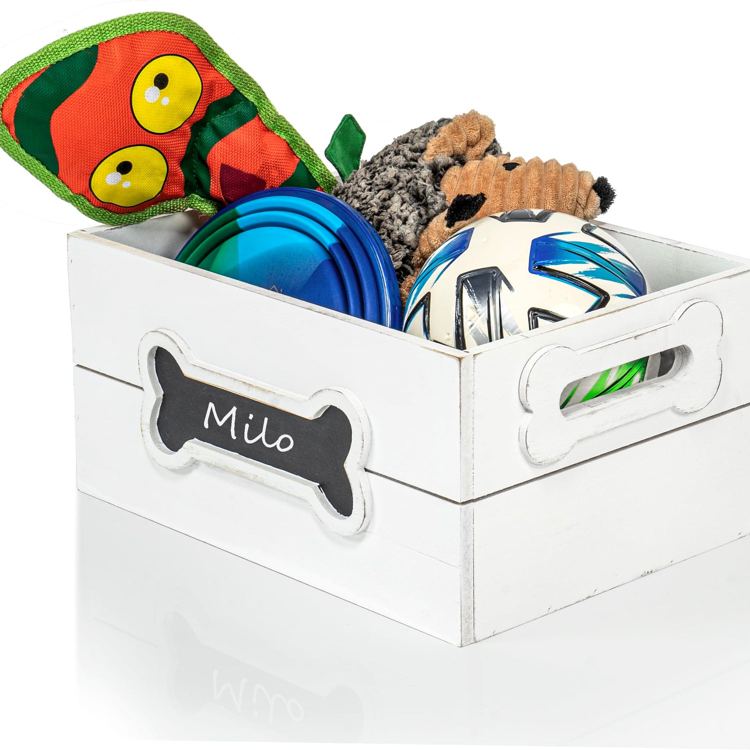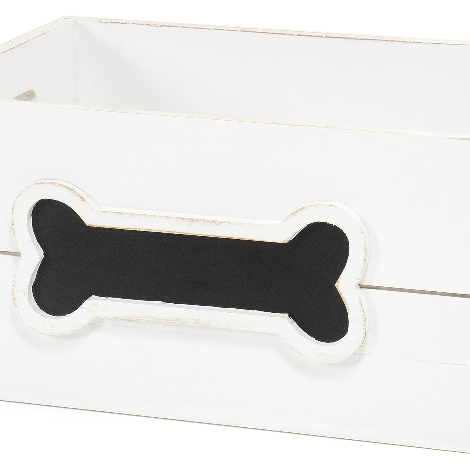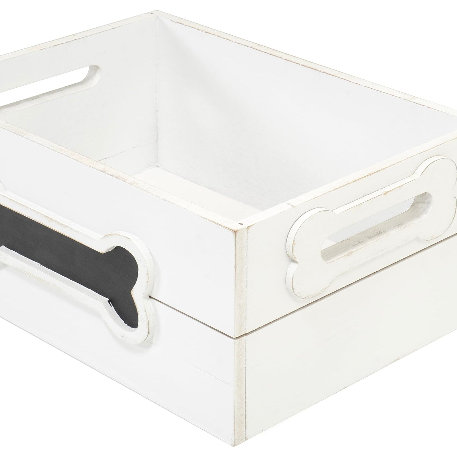 Red Co. 12” x 9” Distressed Wood Crate Dog Toy Storage Box with Handles and Chalkboard, White