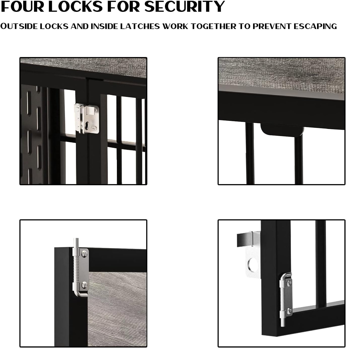 - [4 LOCKS AND 2 DOORS]: Designed with double doors, it is easier for you to access or feed your pets. Instead of normal lock, we applied the 4 anti-escape locks (2 INSIDE and 2 OUT) to ensure the dog won’t be able to escape from the cage and mess the home when you’re not around. 2 removable trays can hold flowing soiling to keep the dog kennel and floor clean.