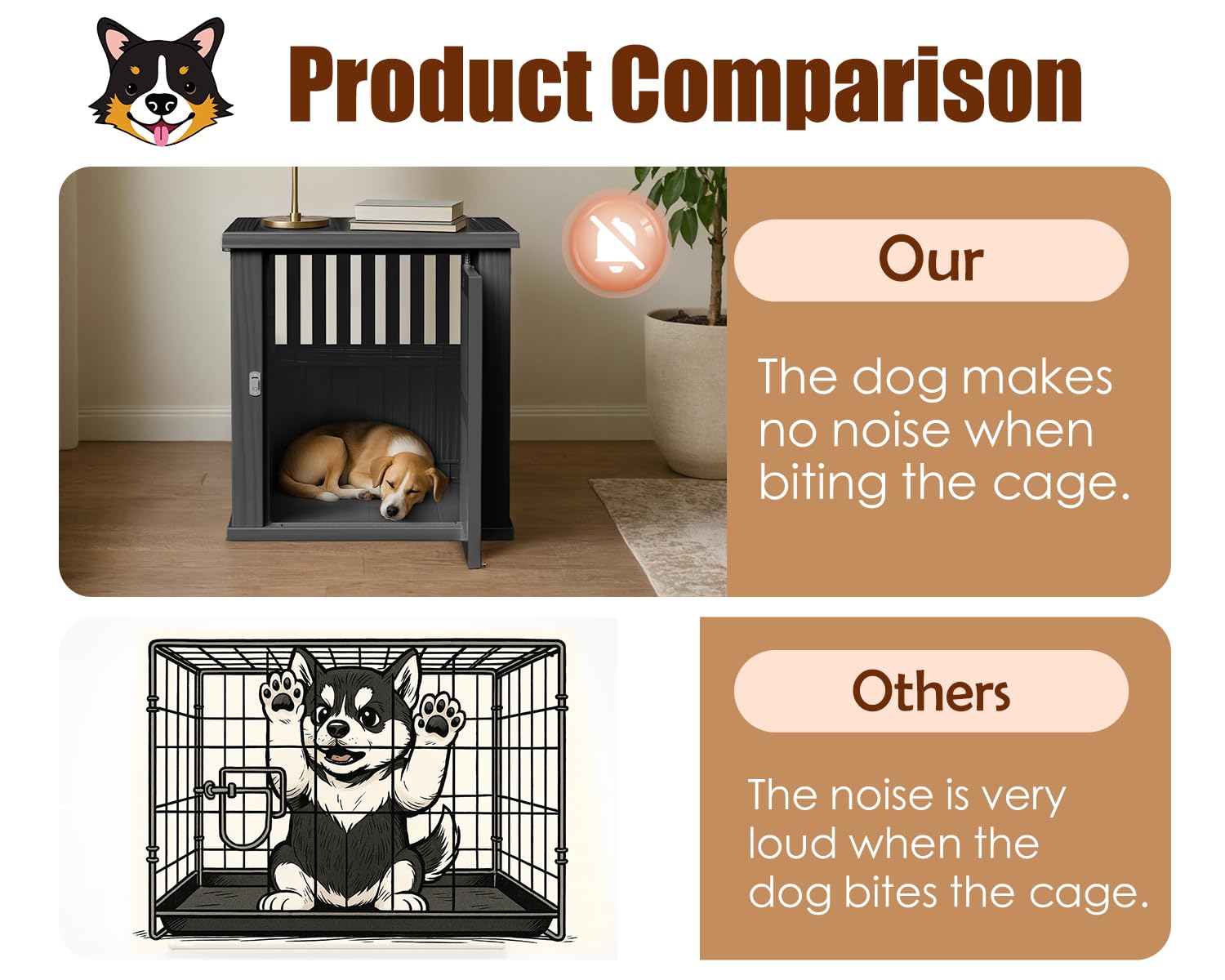 - [High Quality Material]: Our dog crate furniture is made of high quality PP material, which is super tear-resistant. It can withstand dog's tearing and ensure durability. Unlike the noise of steel dog crates, our dog crate stays quiet when your dog is tearing.