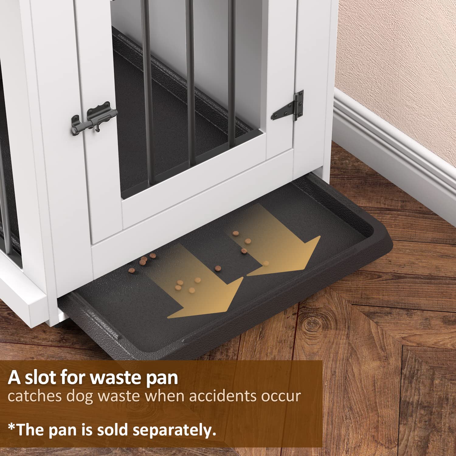 - 【FUNCTIONAL Dog Crate】 Dogs need their own safe space while people are going in and out of the house. The steel bars allow for good air circulation and more view of the room. A slot for pan is installed if a crate pan/tray is going to be used. (Pan size: 29''x18.5''x2'', sold separately.)