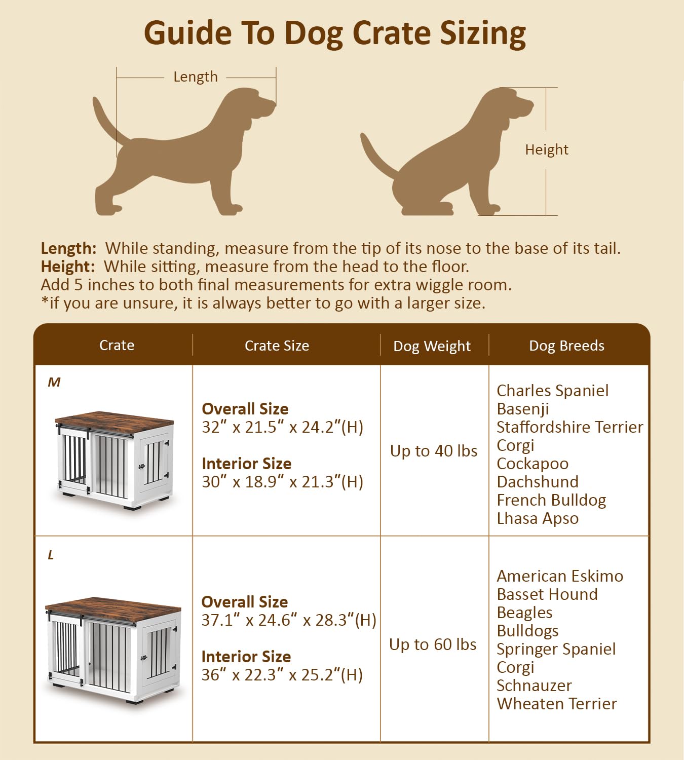 - 【Blend Into Other Furniture】The elegant barn door design is the perfect aesthetic solution to decorate dogs home that blend in better with your sweet home. The thickened rustic wood tabletop gives the space a great rustic vibe, looking way better than a traditional wire kennel.