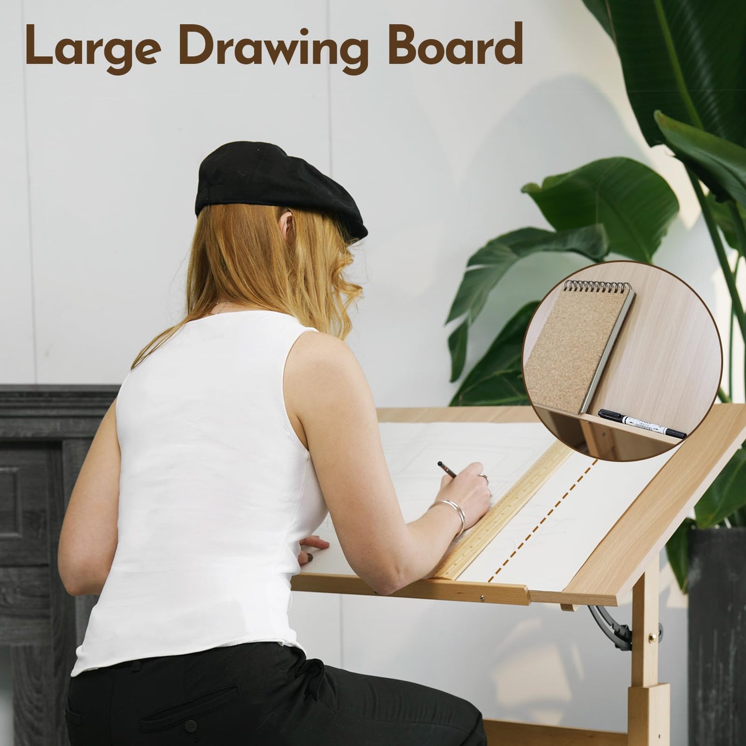 - Sturdy and Stable: Built with high-quality solid wood, this drawing table guarantees durability and stability. It's designed to withstand the rigors of daily creative work without wobbling or shaking.