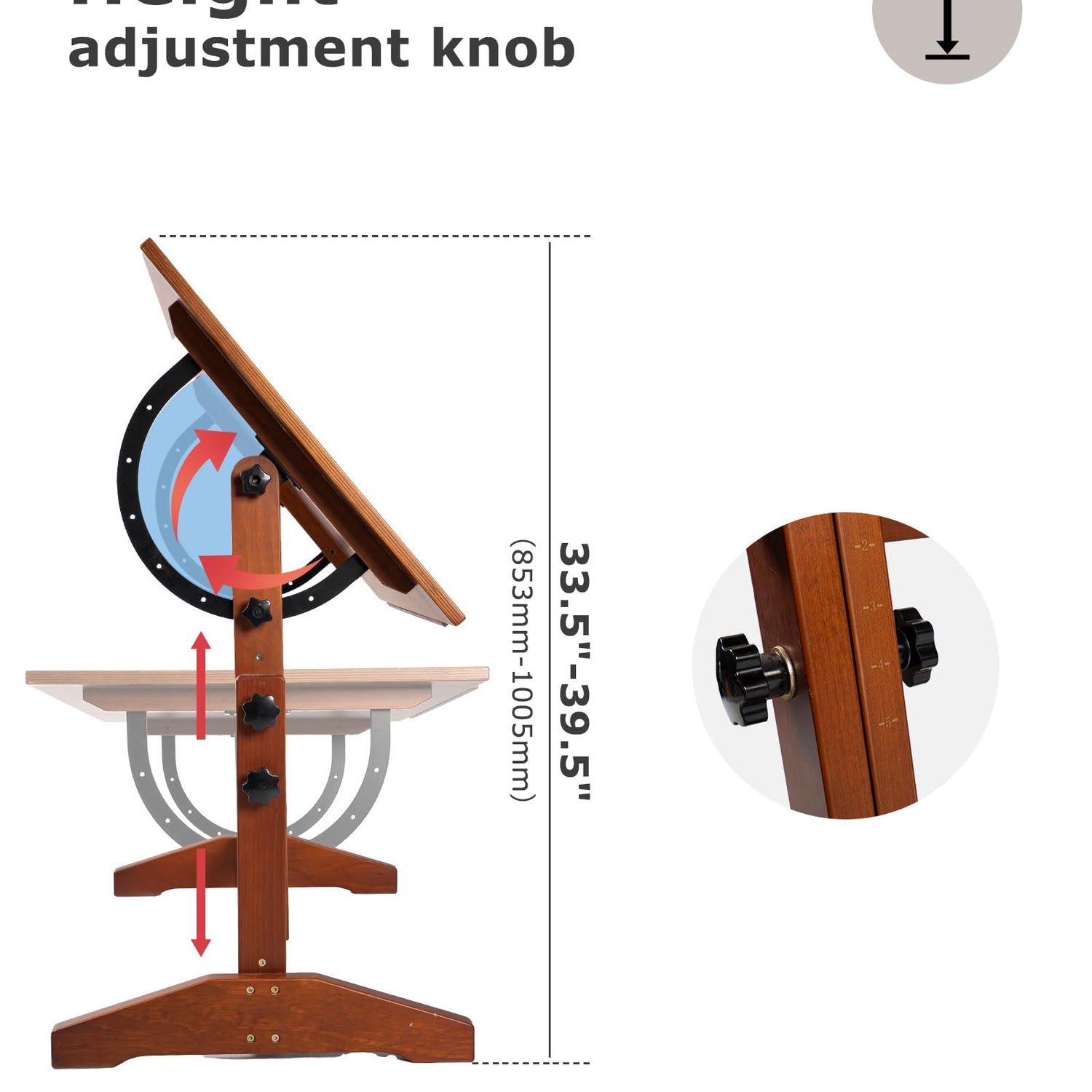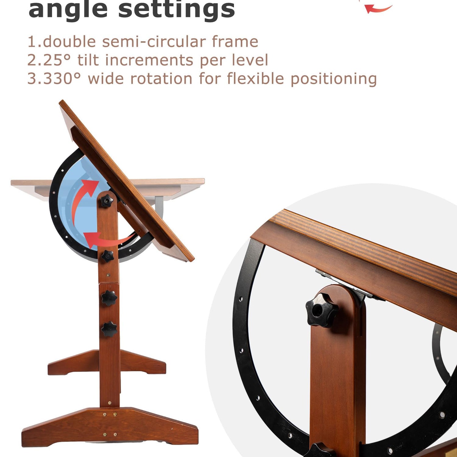 - Adjustable Drafting Table: This 35"x24" artist table features a height adjustment range of 33.5" to 43.3". The double semi-circular frame allows for 25° tilt increments and 70° rotation, offering flexible positioning for drawing, painting, or writing