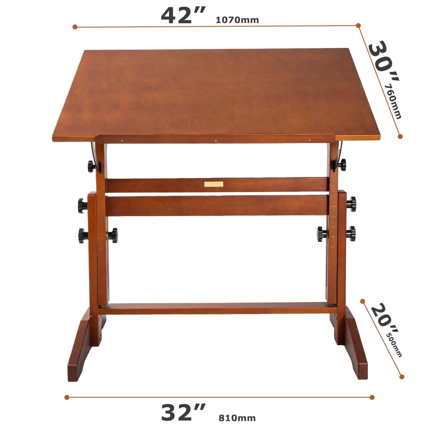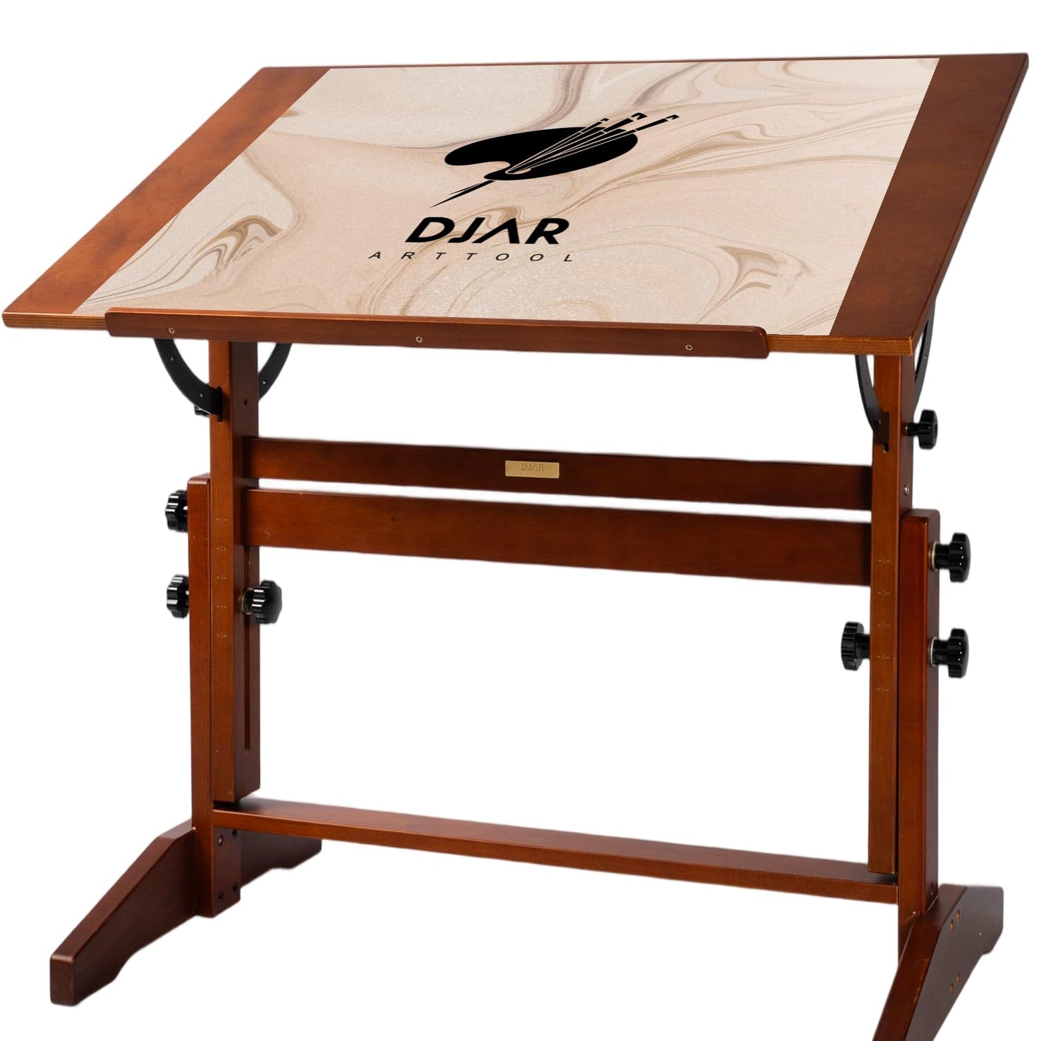 DJAR Adjustable Wooden Drafting Table, 35"x24" Walnut Drawing Desk for Art, Sketching, Painting & Writing