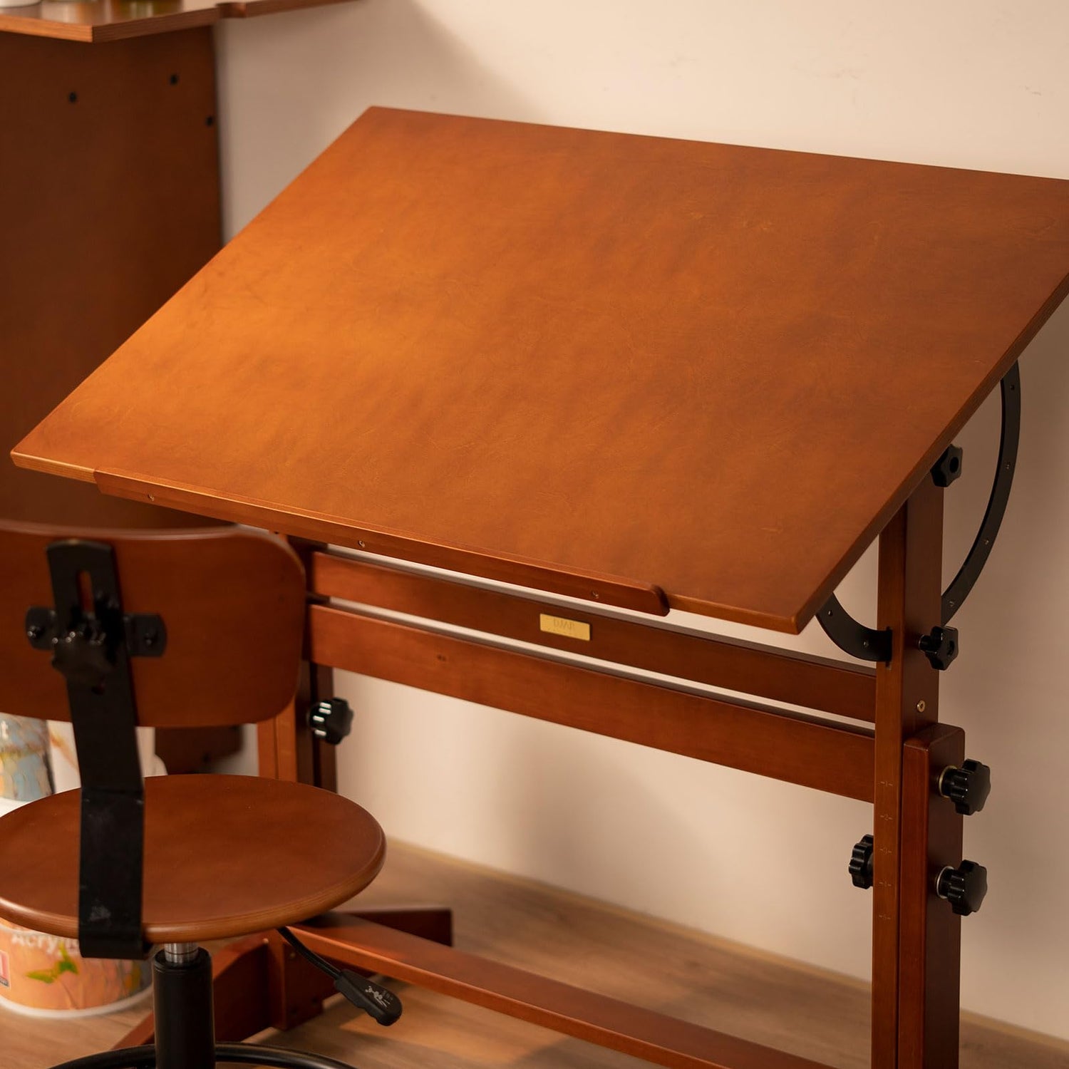 - Walnut Art & Drafting Table: This vintage-style art table and drafting table features a walnut-finished top, adjustable for various creative needs. Built with a sturdy H-frame and solid pine wood legs, it offers stability and lasting durability. Perfect for drawing, painting, writing, or crafting