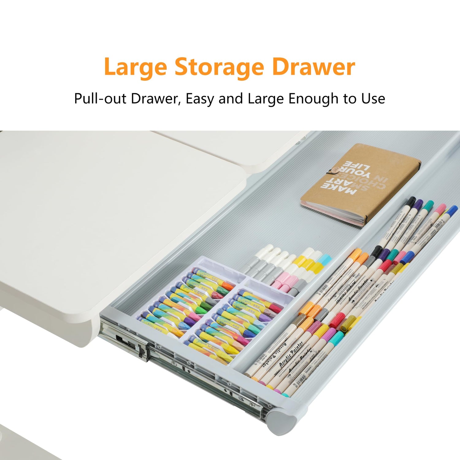 - Designed with Pull-out Drawer: Large drawer under the desktop well store and organize kids' notebooks, pencils, erasers and other school supplies.
