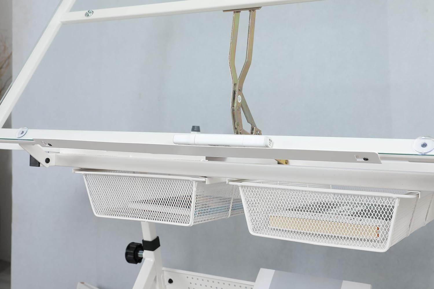 - 🎨Ample Storage: Keep your art studio tidy and organized with two large metal drawers and side storage strips. Ideal for storing pens, paints, and other essentials, this drawing desk ensures a clutter-free environment to help artists stay focused and creative.