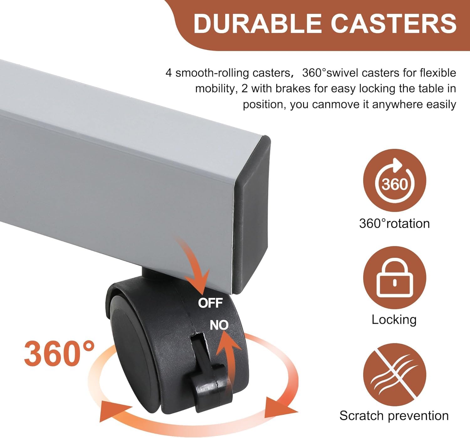 *4 smooth rolling casters with two lockable for easy transport.