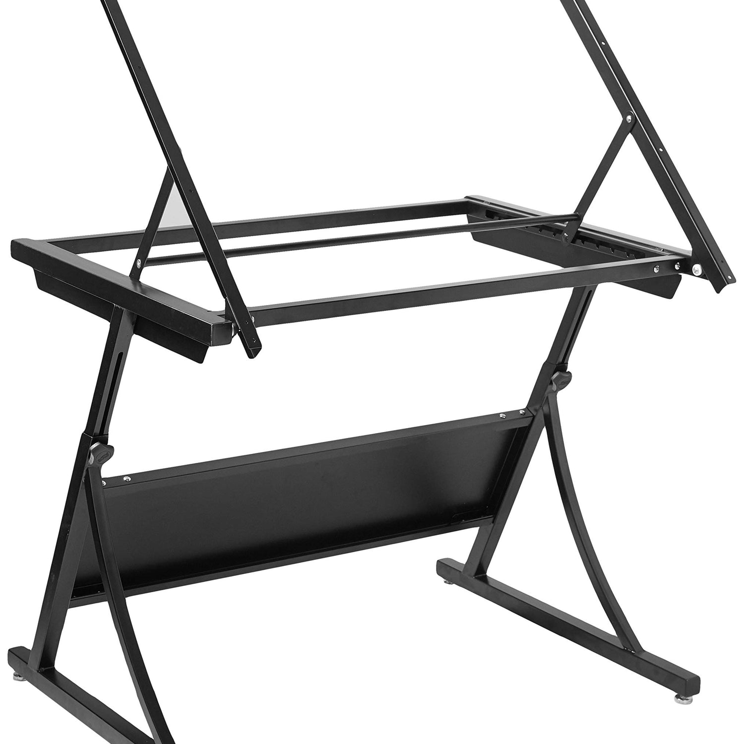 - DIMENSIONS - Overall: 47.25"W x 29.75"D x 26"H - 37.25"H. Flat work surface: 15.75"W x 19.75"D. Tilting work surface: 31.5"W x 19.75"D. Maximum tilt: 50-degrees.
