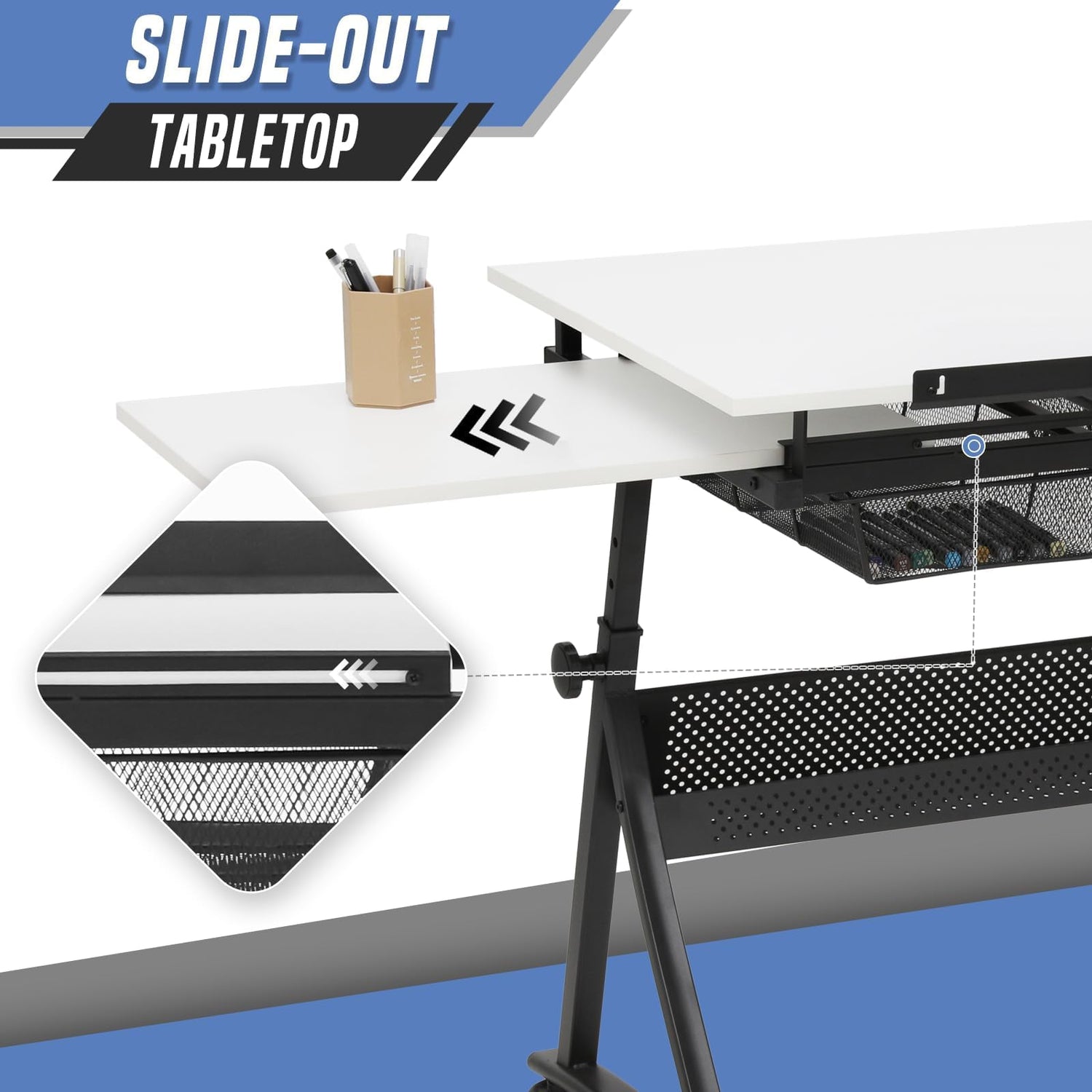 SFIHOME Drafting Table with Height Adjustable Wood Top, Drawing Table with Storage Drawers, Extendable Design, Art Desk Ideal for Drawing, Painting, Writing, Home Office, White