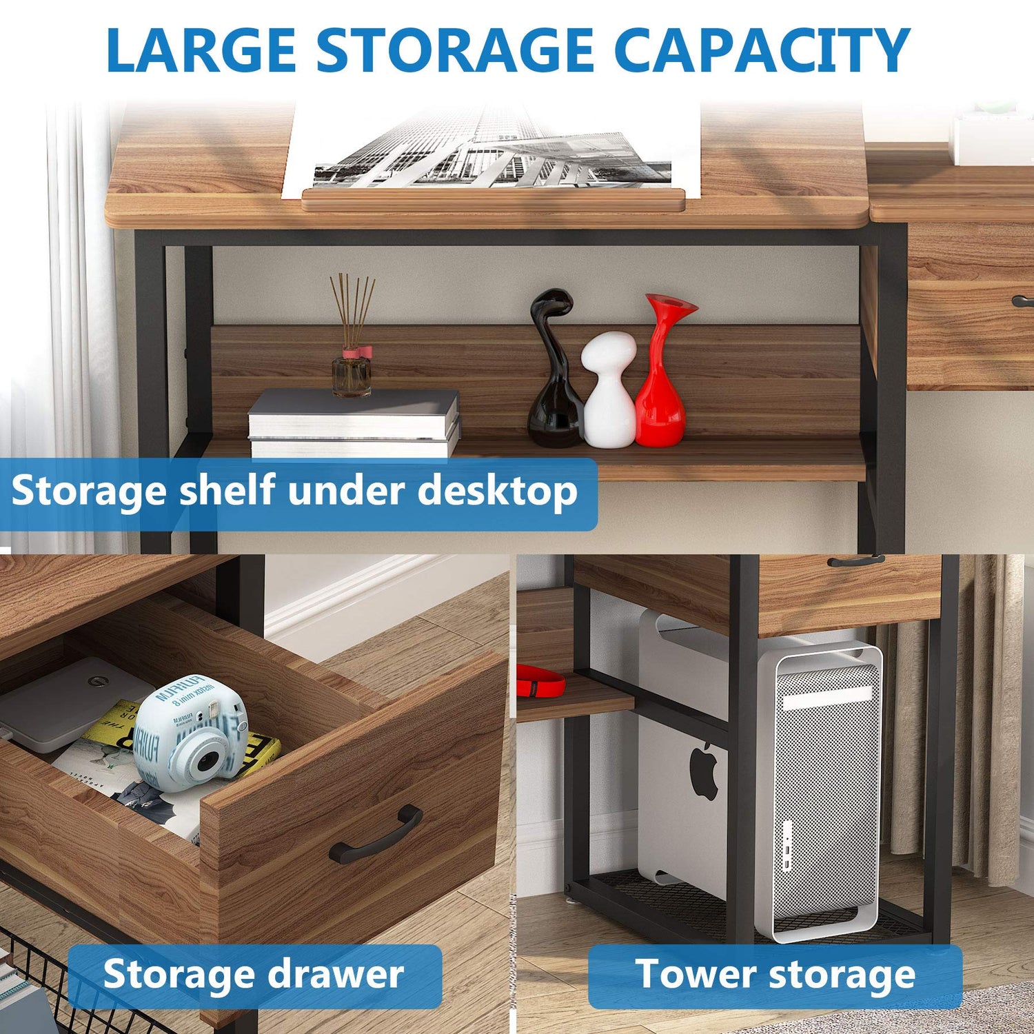 - ✔【Large Storage Capacity, Space Saving】: Features with open storage shelf ,one drawer and bottom shelf underneath desktop, which provides ample storage space for files, books, office supplies, keeps essentials at hand and leaves plenty of desktop for spreading out