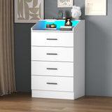 4 Drawer Dresser for bedroom with LED Light, Modern Dresser with Power Outlet, White Dressers with Open Storage Cubby, Chest of Drawers Storage Organizer for Bedroom, Hallway, Living Room(White)โฆ