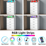 Details: The dressers & chests of drawers are equipped with multi-color RGB LED light strips, the colors, and brightness can be freely adjusted through the button and App. The LED dresser's light is very bright and dense and ensures your safe movement in the dark. You can also set the music, and timing modes in the app. The lights are awesome and blink in sequence to your music and set the time to control the lighting on or off according to your needs. The beautiful LED light will make your home look more modern and fashionable.