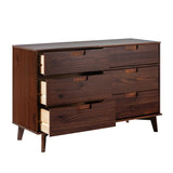 6-Drawer Groove Handle Solid Wood Dresser - Walnut