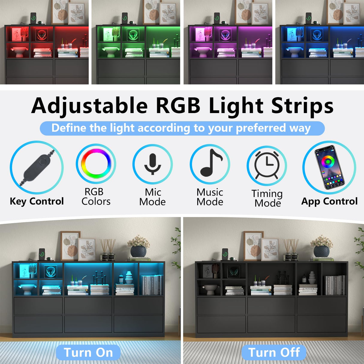 - ๐๐๐ฎ๐ข๐ฅ๐ญ-๐ข๐ง ๐๐จ๐ฐ๐๐ซ ๐๐ฎ๐ญ๐ฅ๐๐ญ & ๐๐๐ ๐๐ข๐ ๐ก๐ญ๐ฌ: This dresser for bedroom features a power outlet, which has 2 AC outlets and 2 USB ports, so you can charge your devices without needing an additional charger. And this chest of drawers is equipped with multi-color RGB LED light strips, the colors, and brightness can be freely adjusted through the button and App, making your furniture more diverse and stylish.