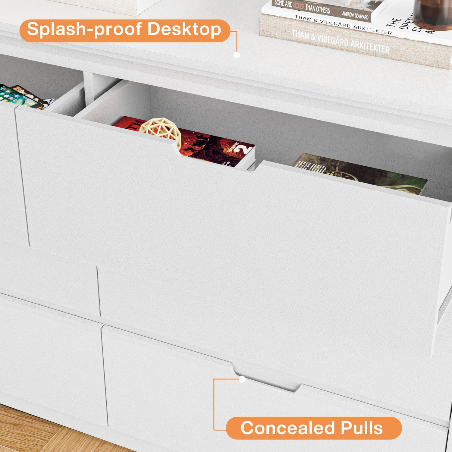 6 Drawers White Dresser for Bedroom, Wood Large Double Dresser with Hidden Handles, Modern Chests of Deep Drawer Storage Organizer for Hallway, Entryway
