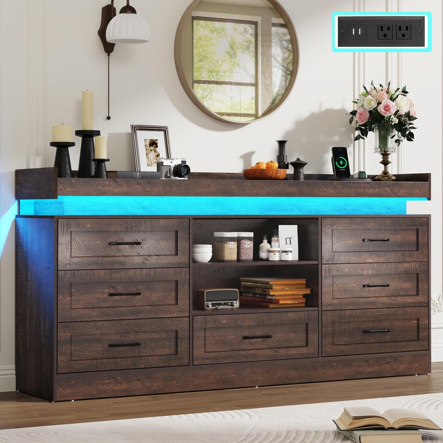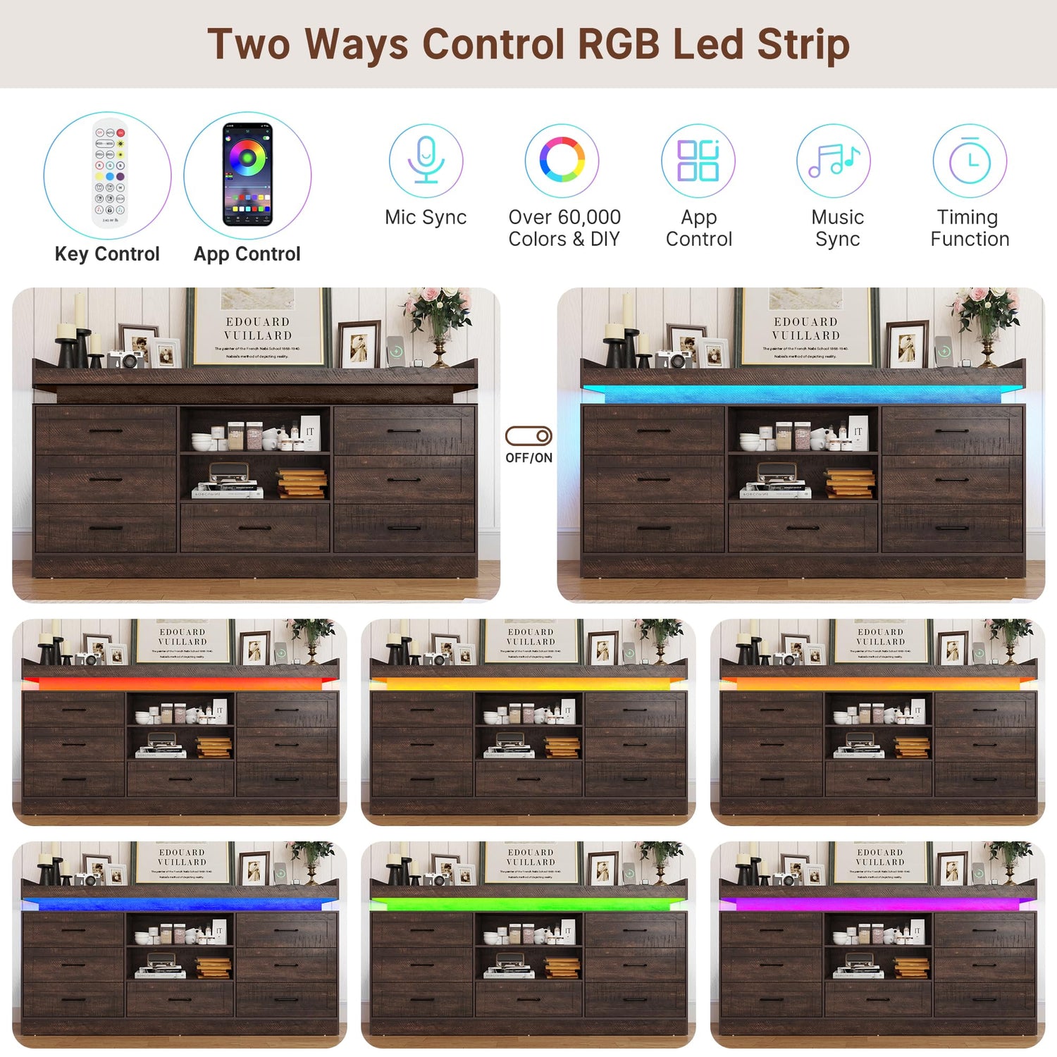 - Practical Family Christmas Gifts :Christmas 2024 is coming,You may can consider adding a Beautiful furniture to your home.this 70" LED Farmhouse 7 Drawers Dresser for Bedroom by Mobile APP and Remote control to control LED lights.The RGB lights can be changed at will, and the color of the lights can dance with the sound, which is a good companion for parties.