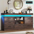 70" Large Farmhouse 7 Drawers Dresser for Bedroom with LED Light and Power Outlets + 2 Open Storage Shelves,Wide 7 Chests of Drawers for Closet,Storage Dressers Organizer for Bedroom(Antique Brown)