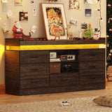 - Multifunctional Wood Drawer Dresser Dresser:our led drawers dresser with storage use distressed knife cut grain craftsmanship, chic industrial and farmhouse styles, unique antique board finishes to provide a natural aging feeling, Farmhouse-style dresser, exuding a perfect blend of rustic charm and functionality.it can be used as a drawer dresser for bedroom.and also is a stylish led dresser TV Stand for Living Room, study, or media room.