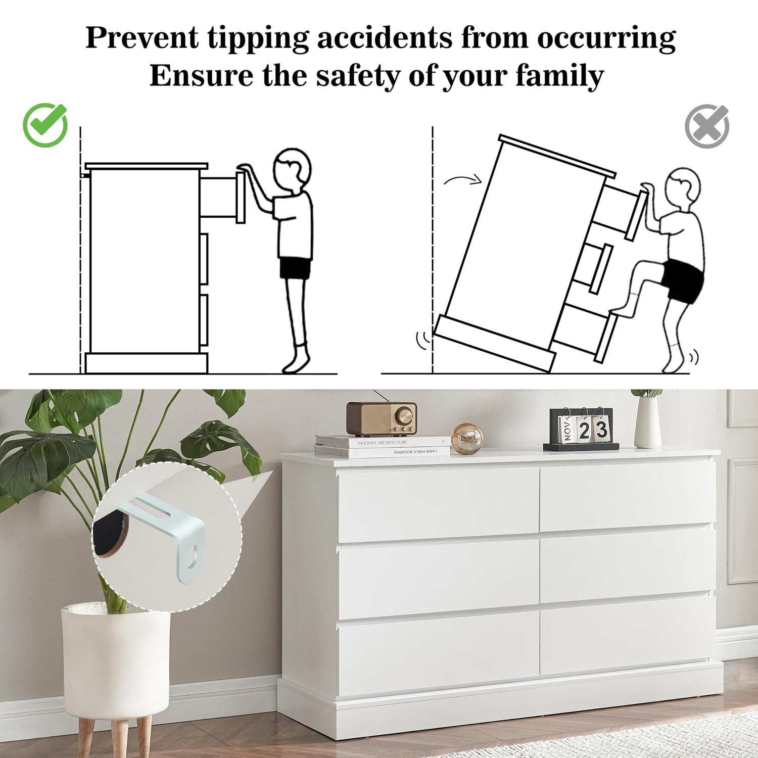 Alaxgumrol White Bedroom Dresser Modern 6 Drawers Dressers Wood Organizer Wide Dresser & Chest of Drawers Storage for Living Room, Entryway, Hallway