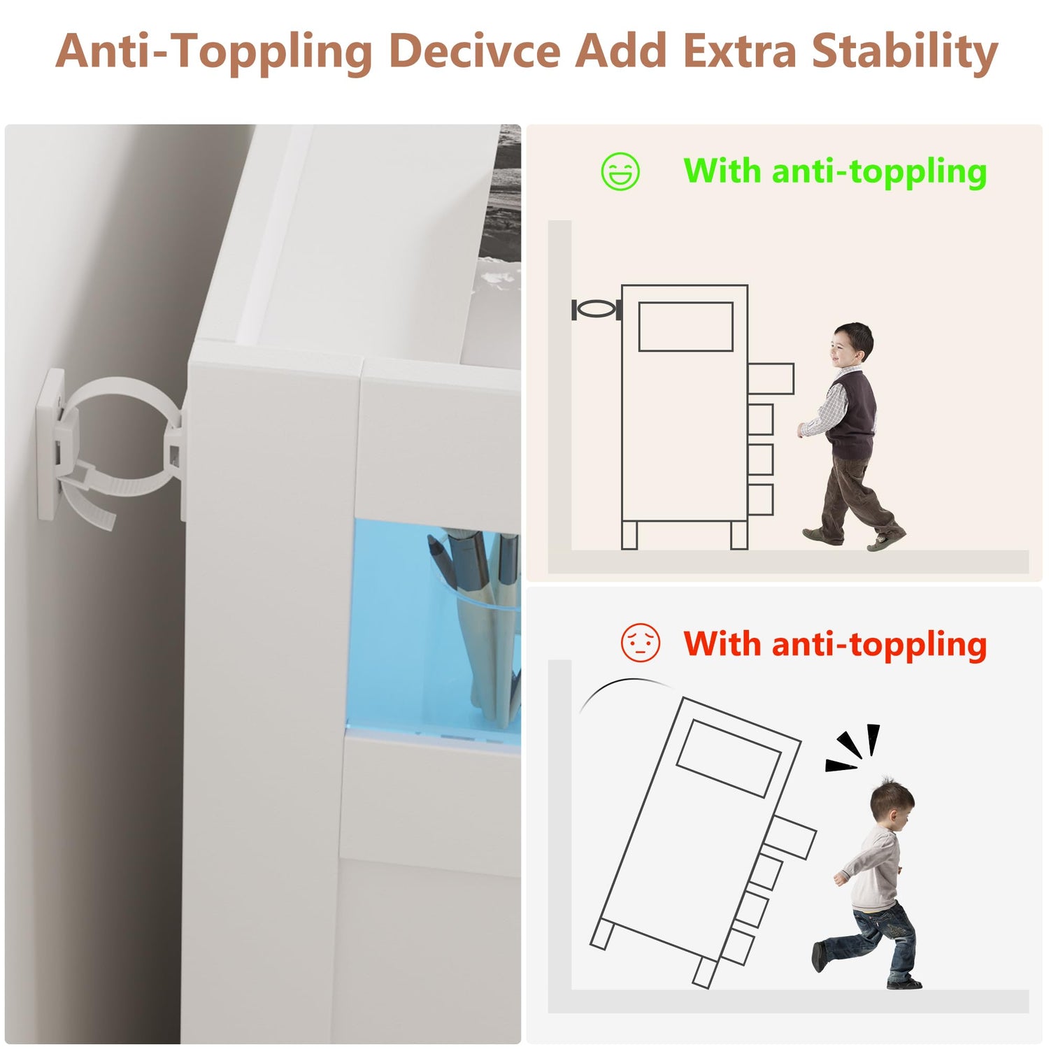 - 【Sturdy and Stable】Crafted with high-quality MDF materials, the wooden dressing table has a compact & more stable structure((Desktop: 165 lbs; drawer: 25lbs; shelf: 40 lbs), and easy maintenance. Equipped with pull-out stops and an anti-tipping device, making it safe and practical in any corner of the home