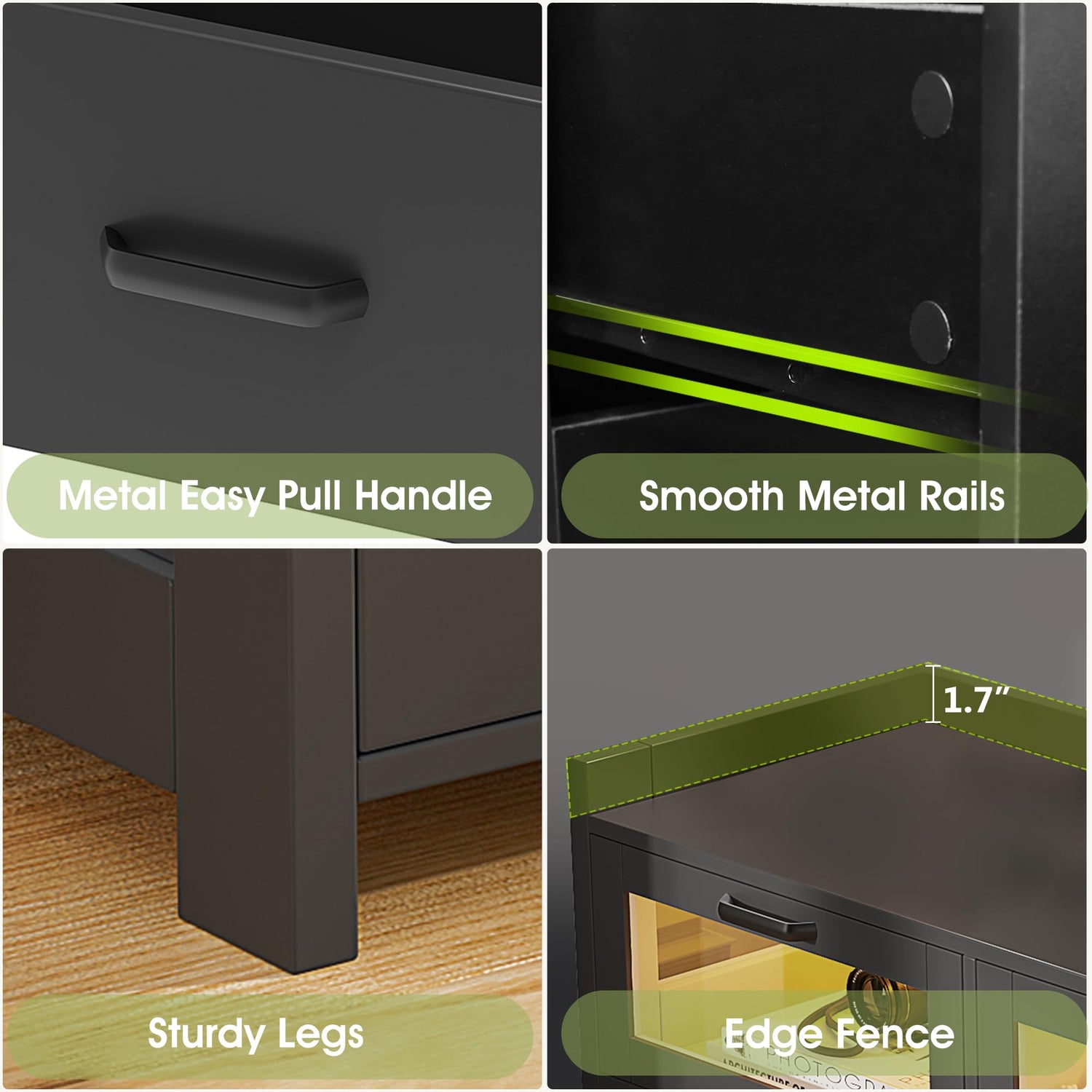 - 【Sturdy Frame & Raised Edges】- The wood dresser storage comes with anti-toppling device to further enhance stability.The raised edges of the tabletop can prevent things on the surface from falling down.The black dresser is made of high quality board which is thick and durable enough for you to store stuffs.