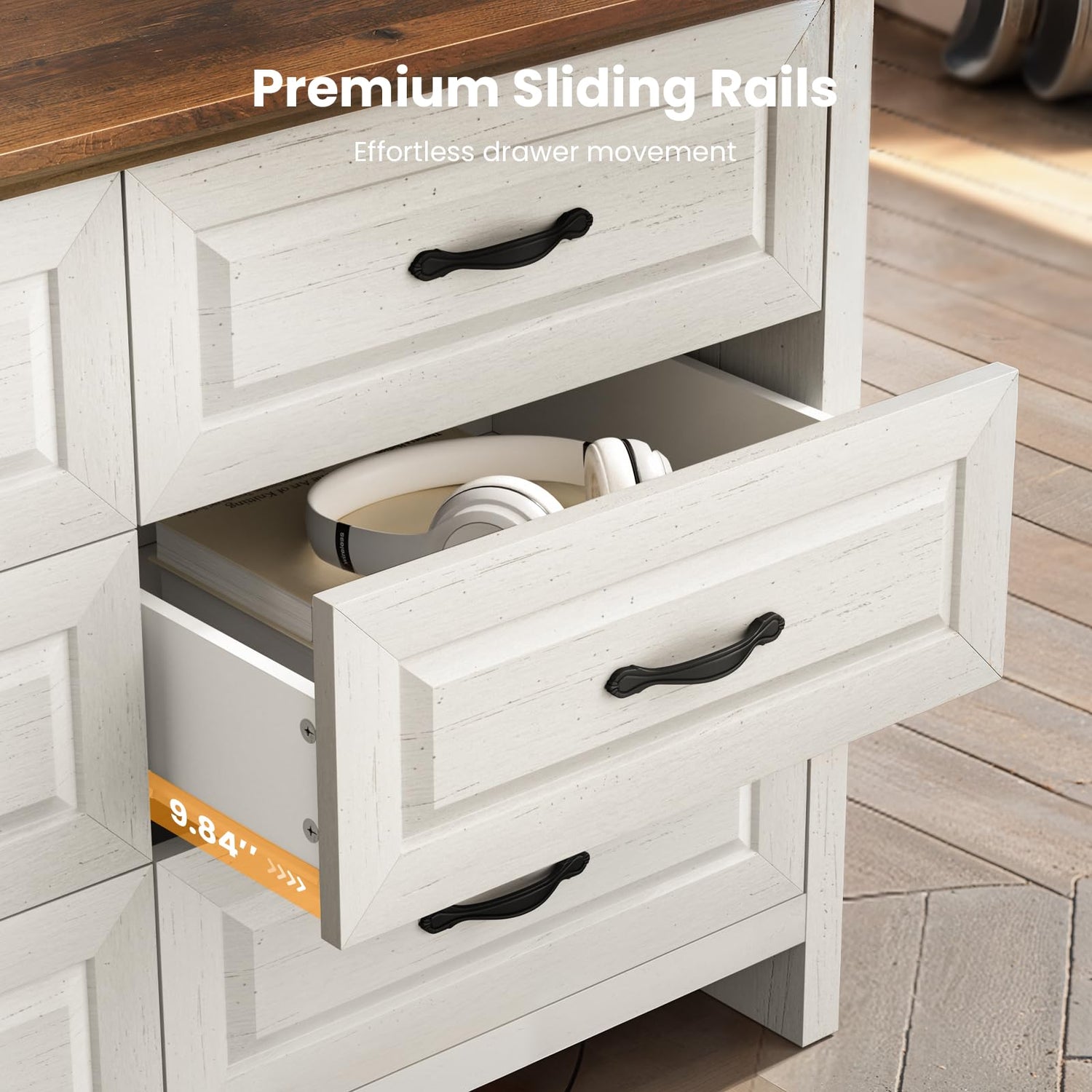 - FARMHOUSE 6 DRAWERS DRESSER: With a width of 47.2", this farmhouse-style dresser easily fits into bedrooms, living rooms, or entryways—adding not only storage but a warm, rustic charm to your home. The natural wood texture and clean farmhouse lines create a cozy, welcoming atmosphere that blends beautifully with modern or traditional décor.