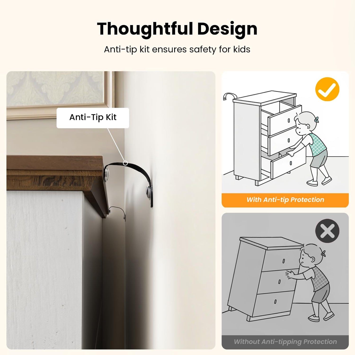 - BUILT STRONGER, LASTS LONGER: Constructed from thick, durable P2-grade particle board and MDF, this dresser has a net weight of 92.6 lbs, giving it a solid, stable feel you can rely on. The reinforced structure and thickened panels offer enhanced strength and durability, while the broad base ensures firm support. An included anti-tip kit provides added peace of mind for homes with kids or pets.