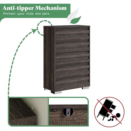 AMERLIFE 5 Chest of Drawers for Bedroom, 47" Tall Drawers Dresser with Tilt Handle, Farmhouse Wooden Dresser for Bedroom, Living Room, Hallway, Grey