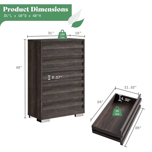 - MORE DETAILS: 31.3"W x 15.8"D x 47.5"H. This tall skinny dresser comes with clear installation instructions, pre-installed drawer slides make installation faster.