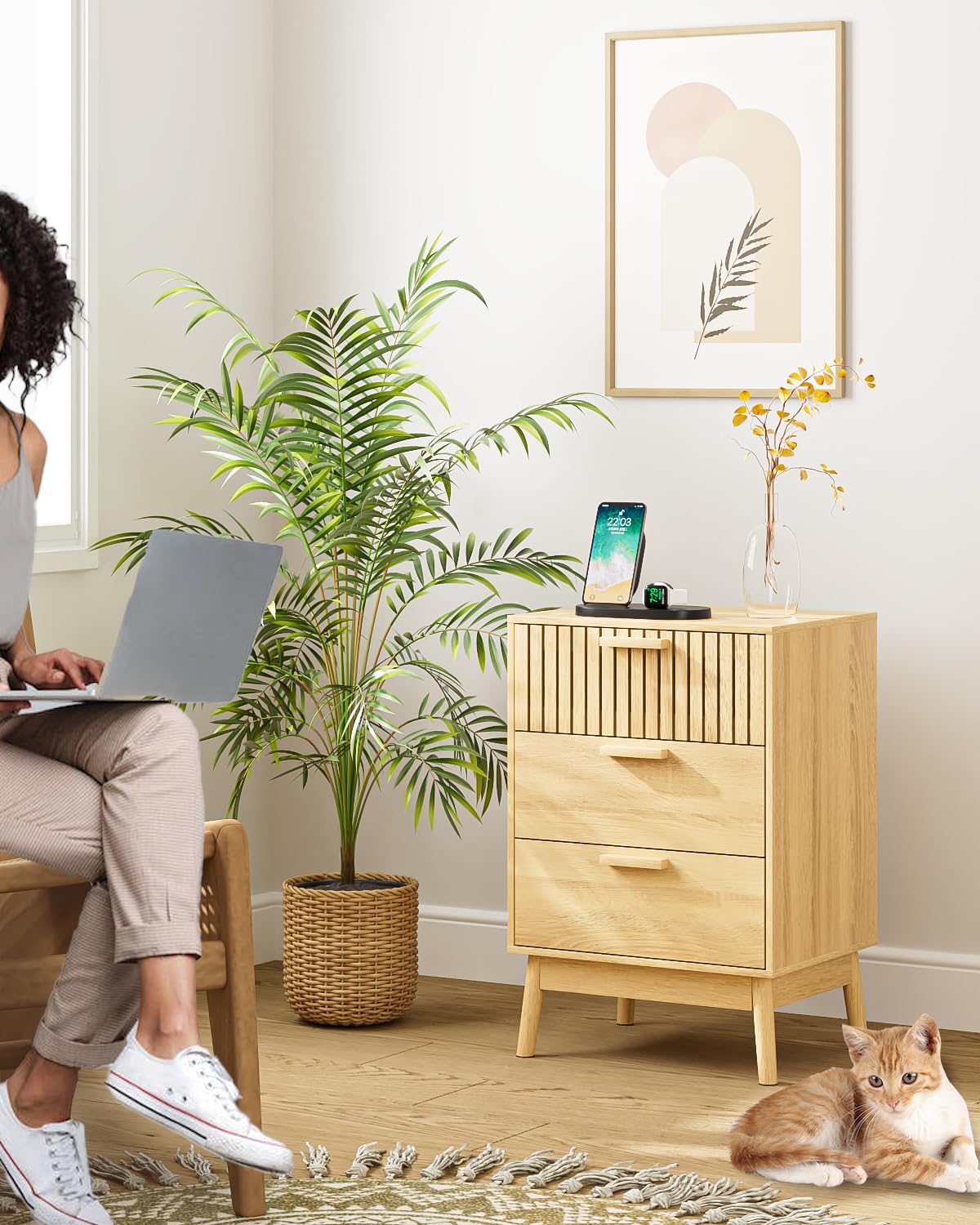 Details: Aobafuir 3 Drawer Dresser for Bedroom, Fluted Nightstand Modern Closet Dressers Chest of Drawers, Wood Oak 3 Drawer Storage Chest for Bedroom, Hallway, Living Room