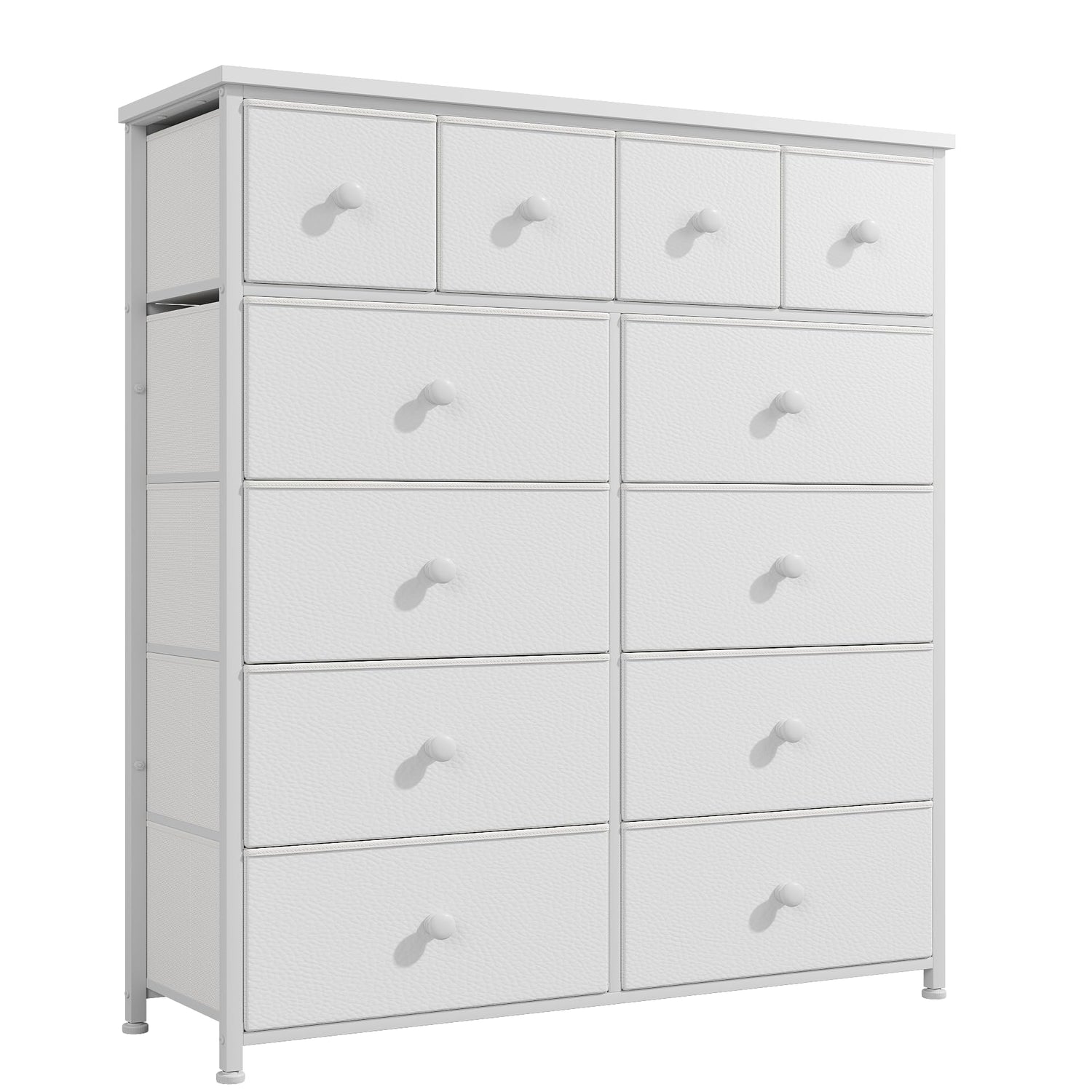 Bepatio Dresser for Bedroom with 12 Drawers Tall Dressers for Bedroom Fabric Dressers & Chest of Drawers with Sturdy Metal Frame, Wood Top, for Girls, Closet, 40.6" W x 11.8" D x 44.5" H (White)