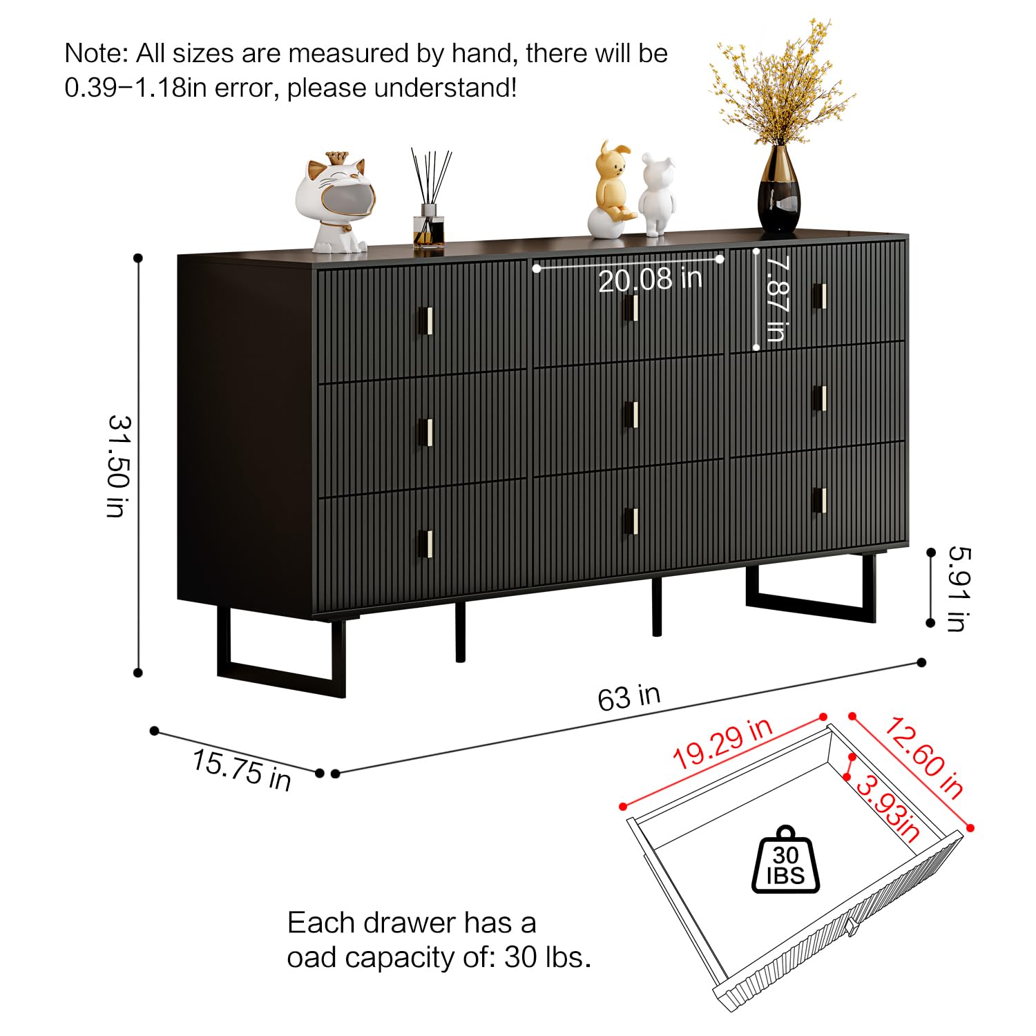 Chrangmay Modern Chest of Drawers with 9 Drawers,Deep Drawers,Clothes Organizer,Large Storage Cabinet for Living Room, Bedroom,Hallway,with Anti-Tipping Device,Matte Black