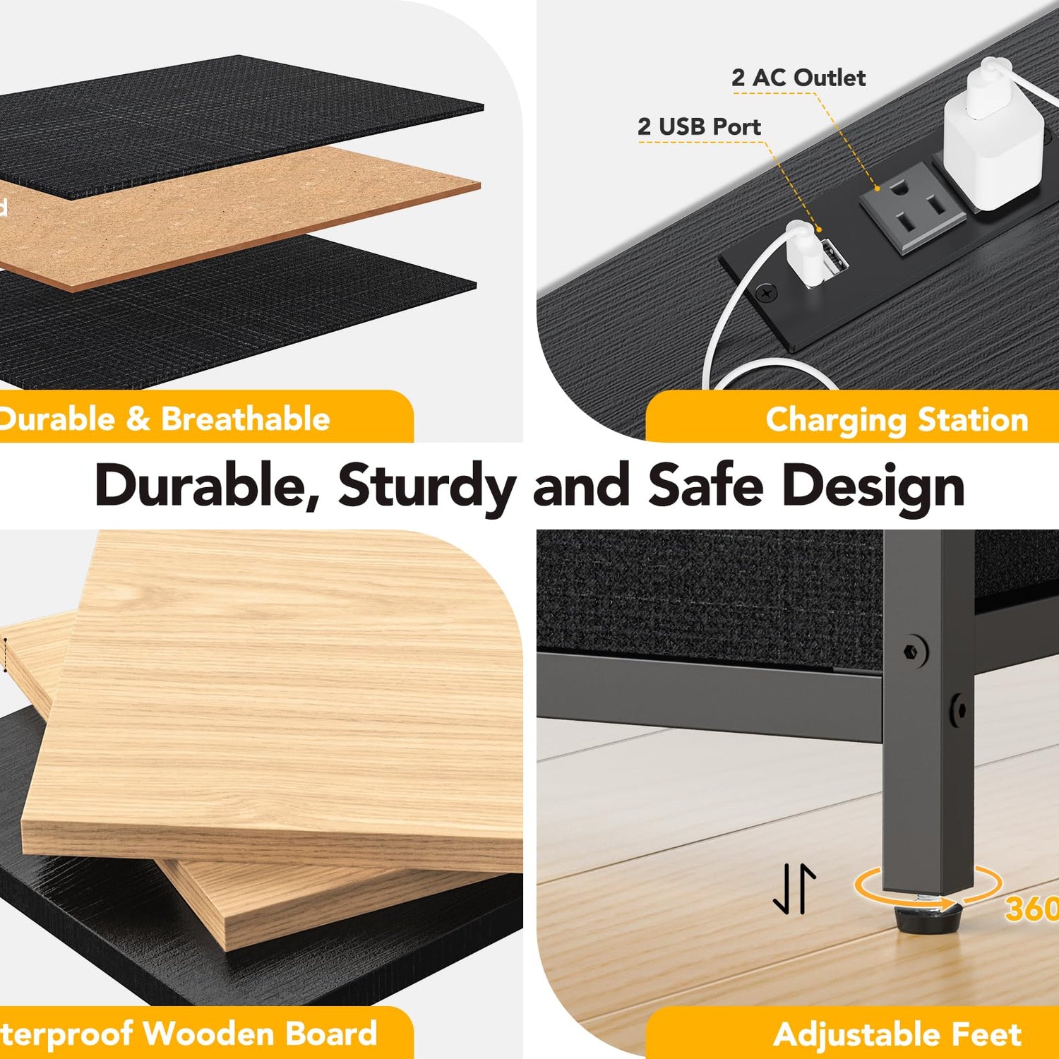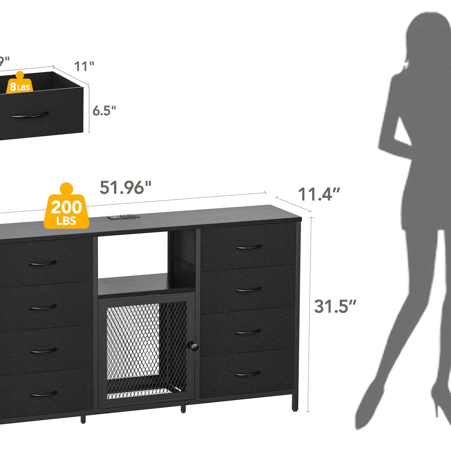 - 【TV Stand Dresser Size】Black dressers for bedroom dimensions:51.96" L x 11.4" W x 31.5" H. Large fabric drawer size: 15.9" L x 11" W x 6.5" H. Weight capacity: 220 pounds. Power cord length: 150cm/4.92ft.