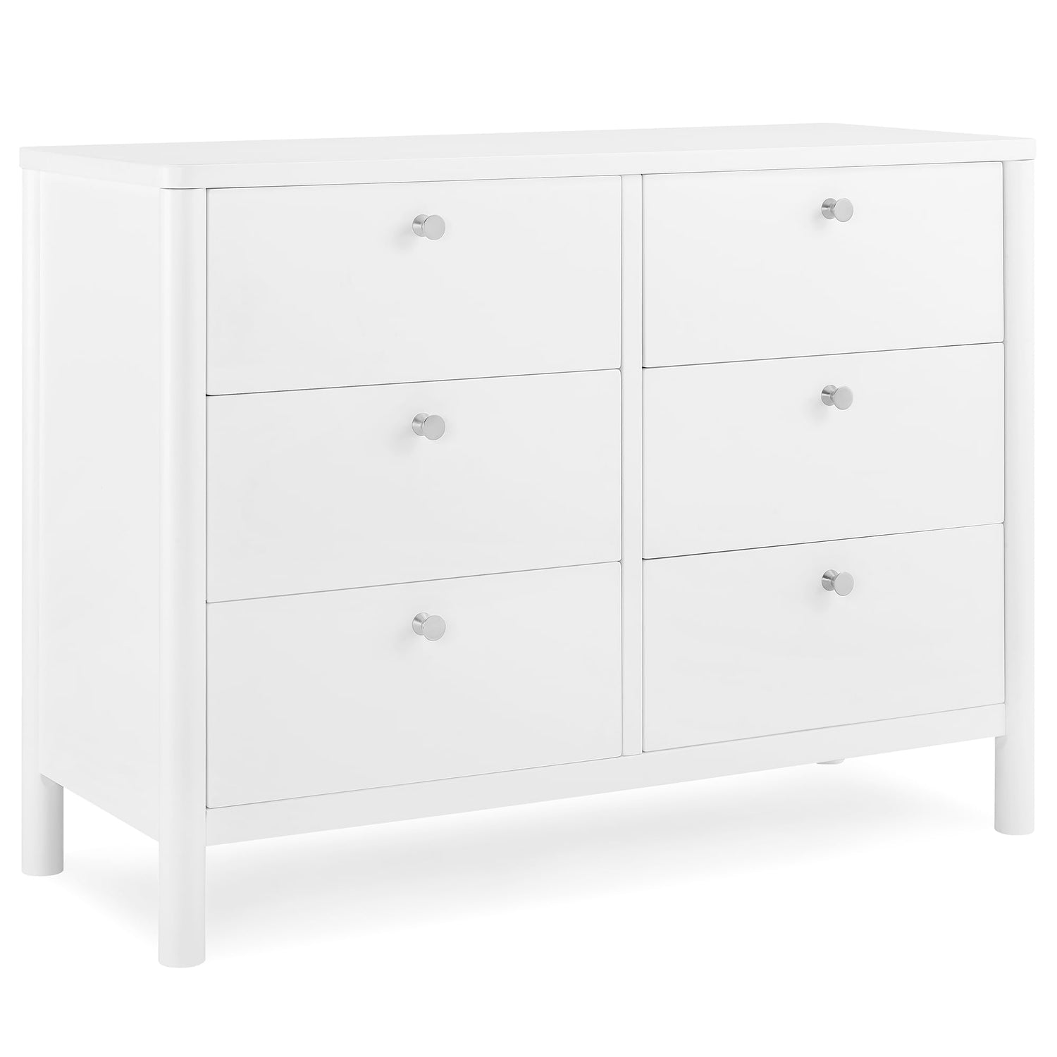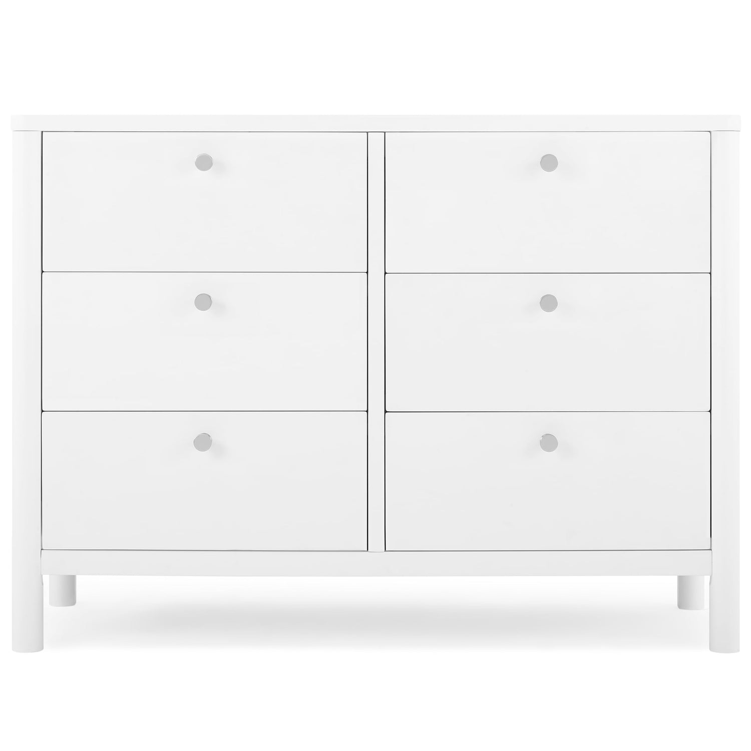 Delta Children Brooks 6 Drawer Dresser with Interlocking Drawers (Includes 3 Sets of Knobs – Choose from Natural, Brushed Nickel & Melted Bronze), Bianca White