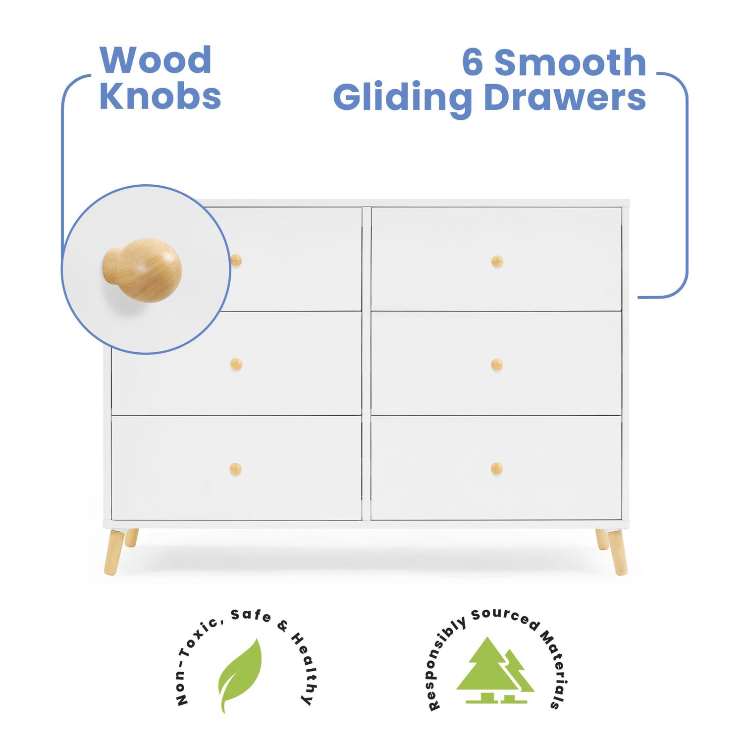 Delta Children Essex 6 Drawer Dresser, Bianca White/Natural