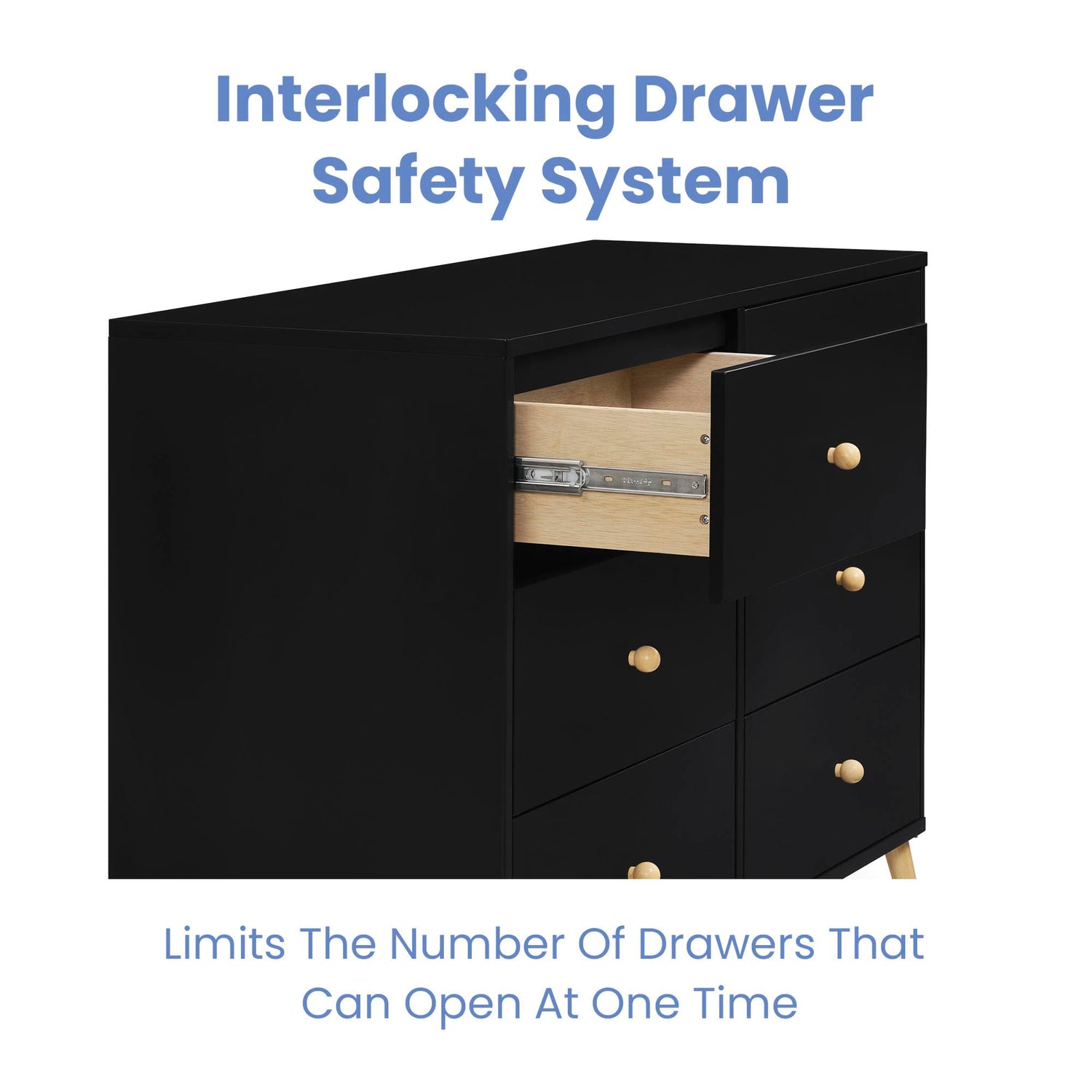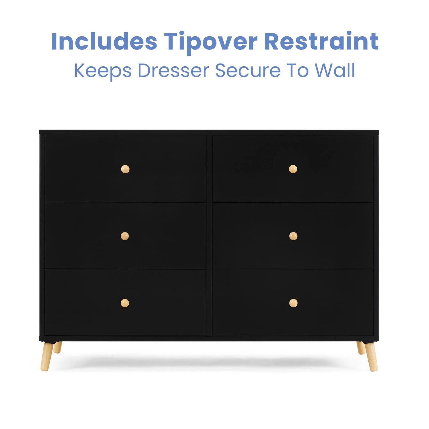 - SAFE OPTION: Interlocking drawer system limits the number of drawers that can be opened at one time | Tested to meet the current requirements of ASTM F2057, the mandatory CPSC safety standard that protects children from tip-over incidents |We know chemicals have no place in your house, so we use a non-toxic multi-step painting process that is lead and phthalate safe | Dresser includes tipover restraint (safety anchor) for you to securely attach it to your wall