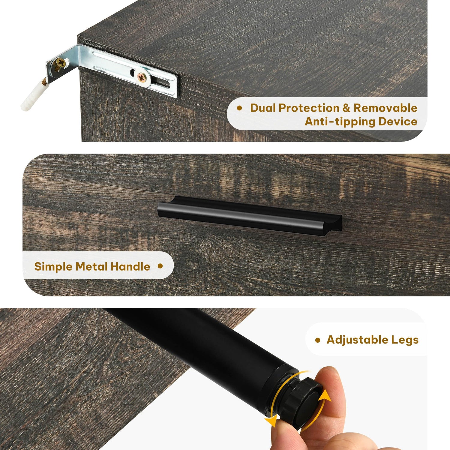 - Anti-Tipping Devices Eliminate Potential Hazards: You know? Accidents always happen unintentionally. The dumping of a storage cabinet can cause harm to families and pets. Therefore, our wood storage chest of drawers adopts dual anti-tipping back buckles and thickened support foot pads, which can better prevent accidents.