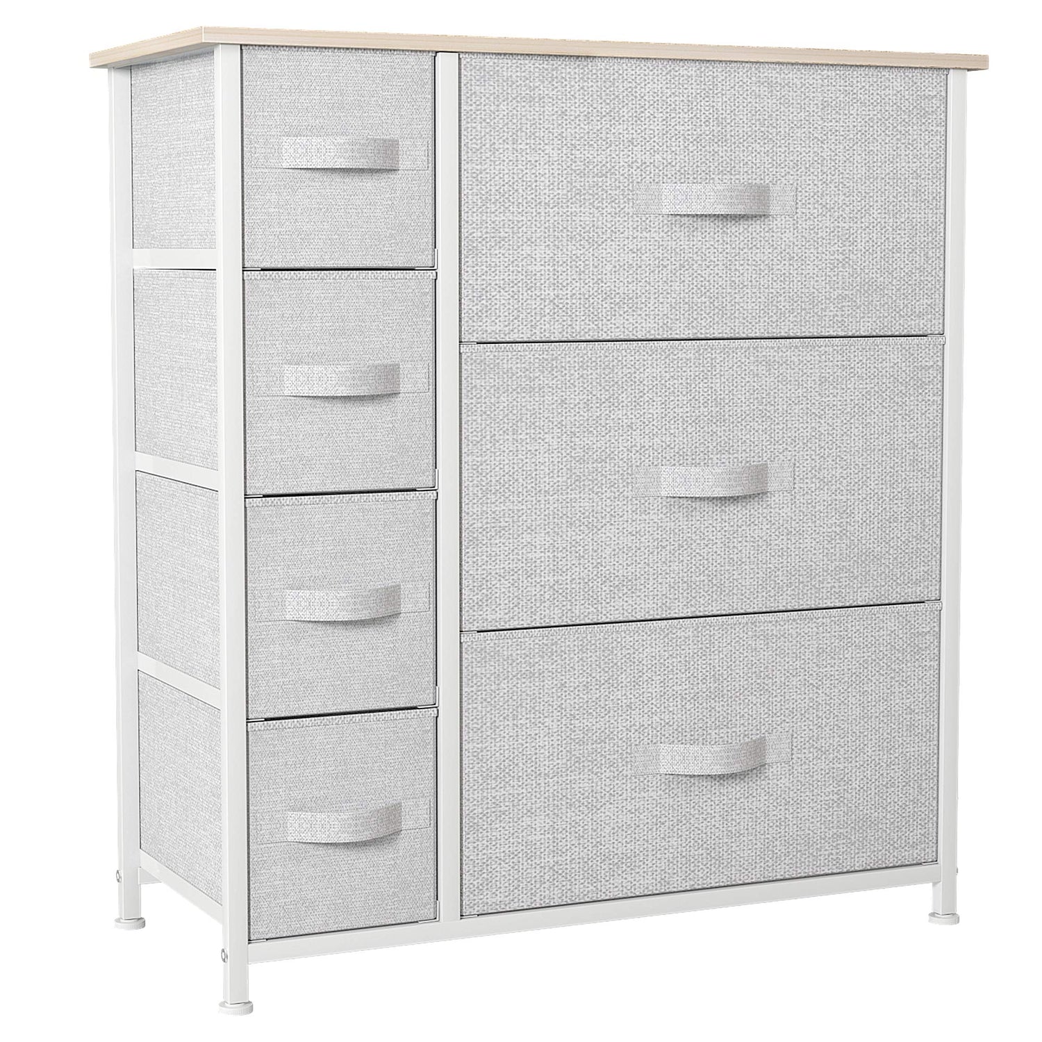 DWVO Dresser for Bedroom, 7 Drawers Fabric Dresser, Organizer Unit for Living Room, Hallway, Closets - Sturdy Steel Frame, Wooden Top & Easy Pull Fabric Bins, Light Gray