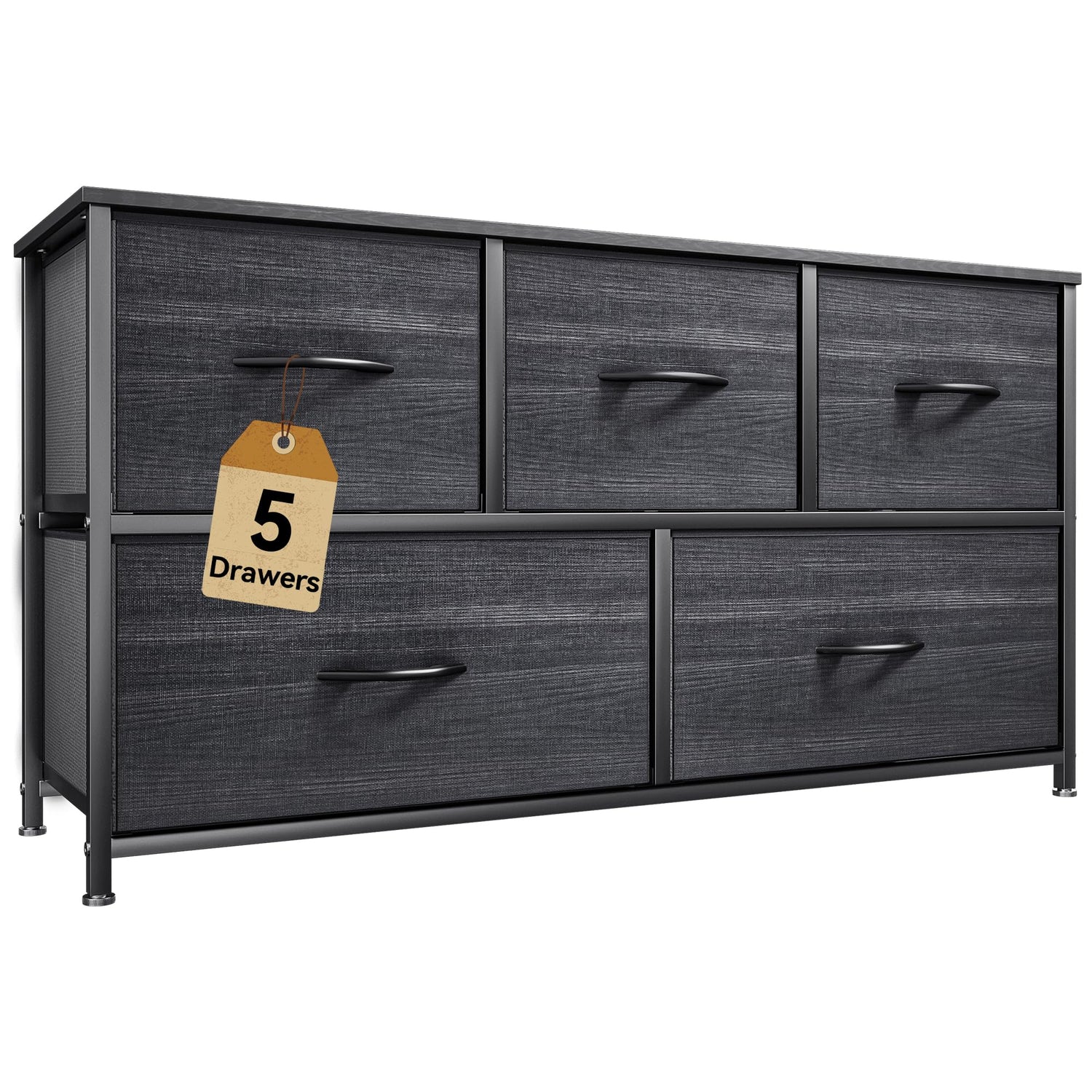 DWVO Dresser with 5 Drawers - Fabric Storage Tower, Organizer Unit for Bedroom, Living Room, Closets - Sturdy Steel Frame, Wooden Top