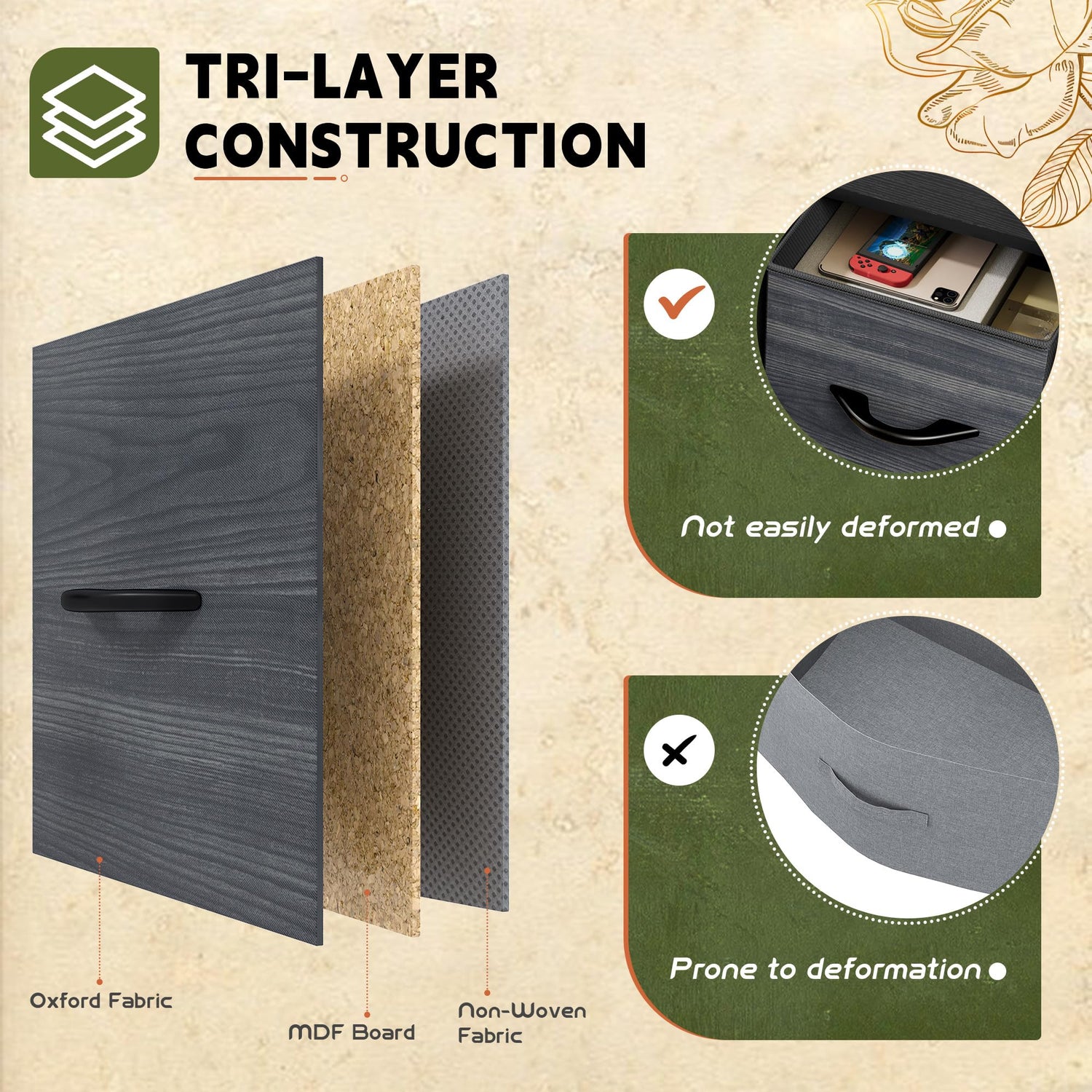 • STURDY CHEST OF DRAWERS- Strong metal frame aptly supports the overall structure; Premium MDF wooden top plus non-woven synthetic fabric increases durability