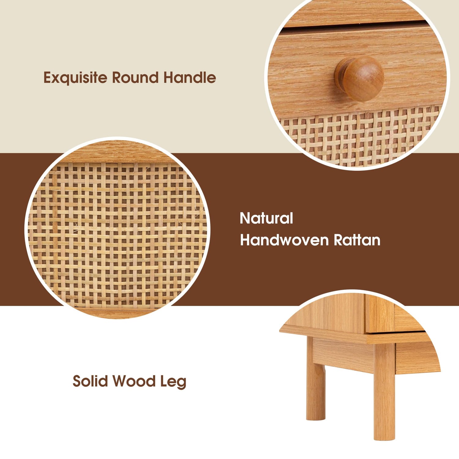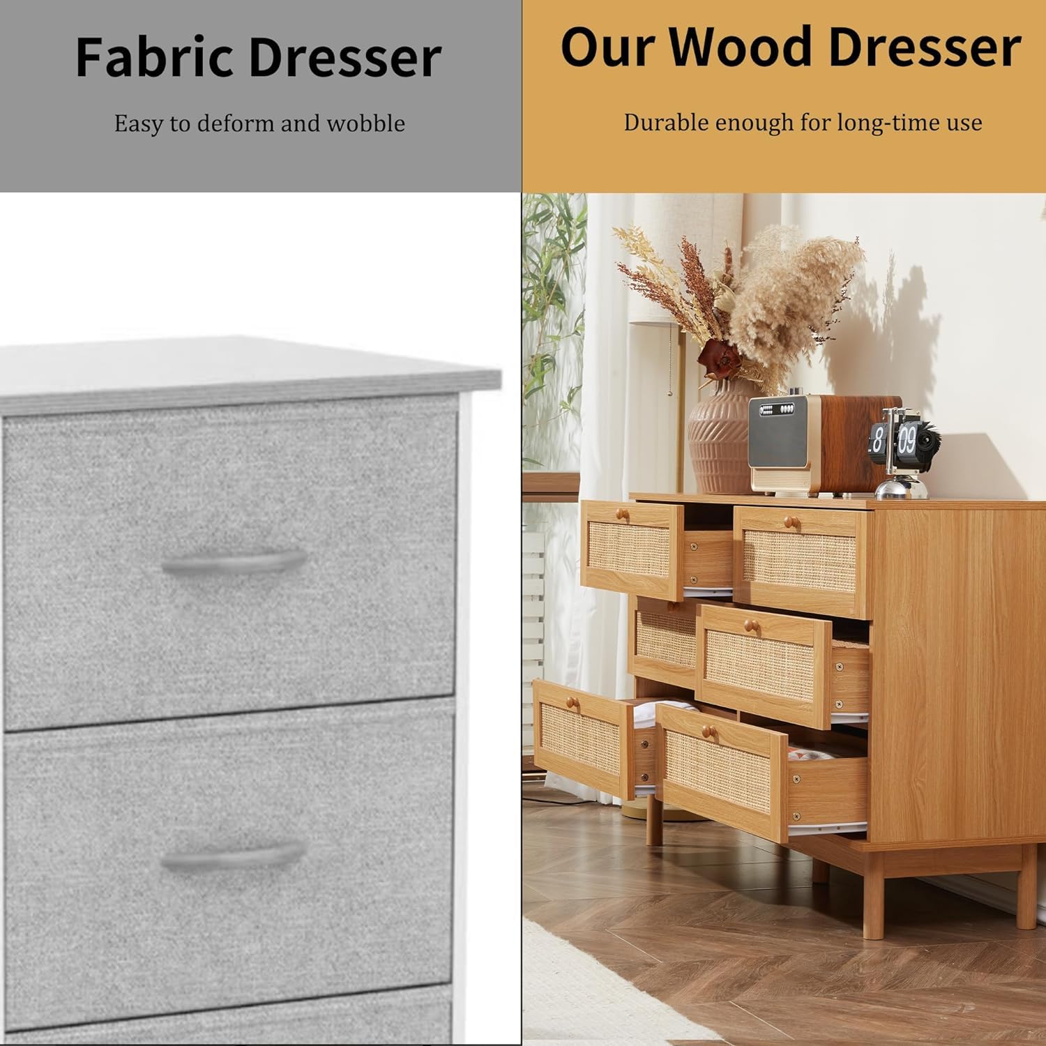 - 【6-Drawer Storage Space】 With 6 deep drawers and a spacious tabletop, this nature rattan dresser is a perfect storage organizer to keep your clothes, blankets, socks and other items in order. Its elegant handles and drawers with smooth slides allow you to effortlessly reach the necessities.