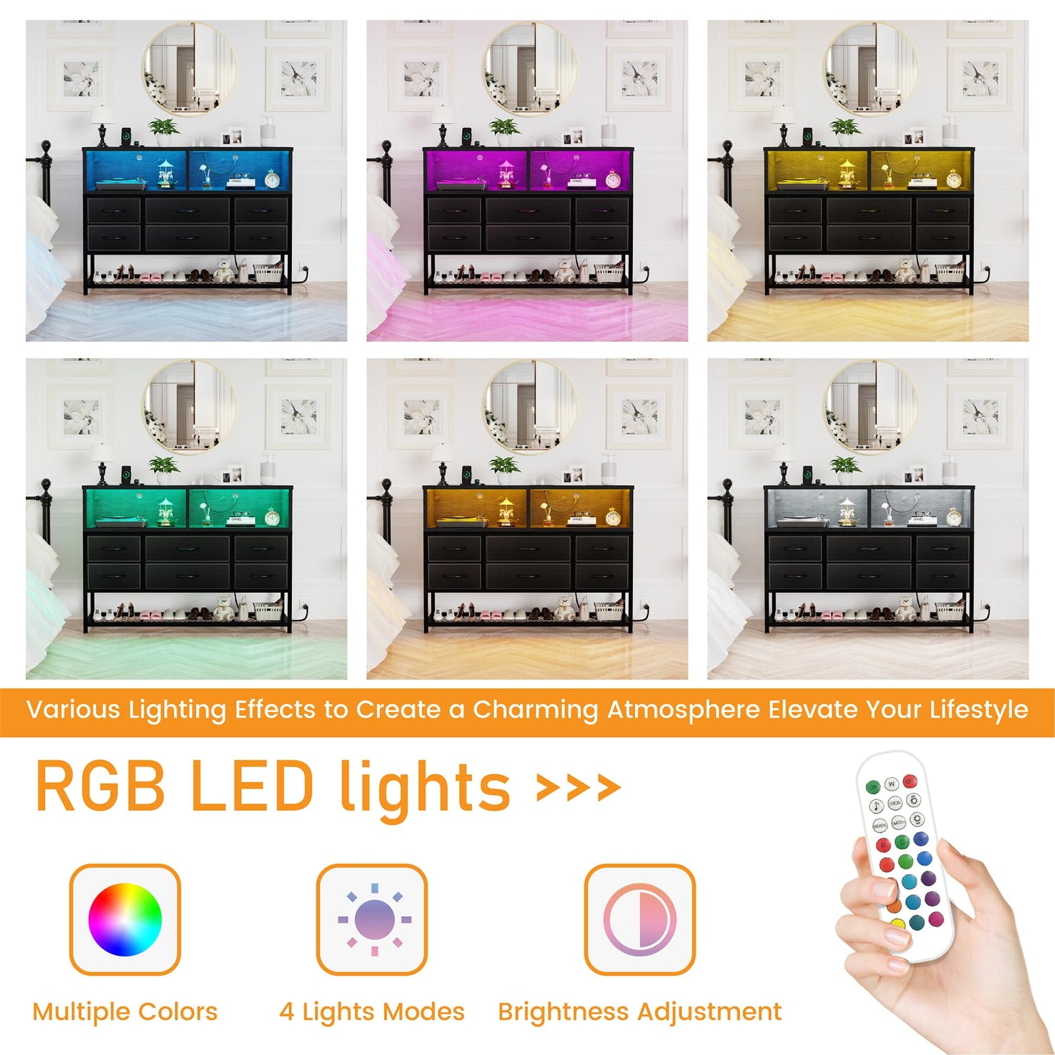 - LED Dresser with Charging Station: The dresser for bedroom with a charging station and LED light, combines functionality with romantic style. You can easily control these LED lights with the included remote control or app to create ambience. Meanwhile, our storage chest of drawers with built-in power outlets(2AC+2USB+1TC), lets you easily charge your phone, lamp and other devices, solve the low battery problem