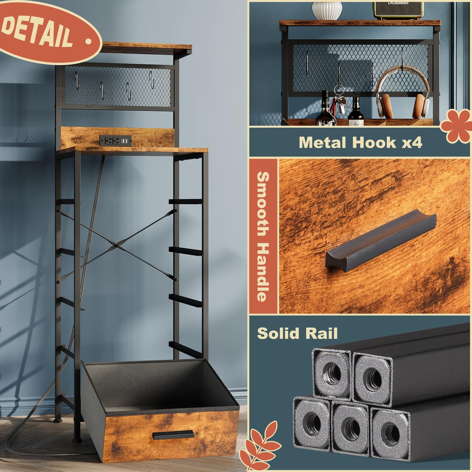 • Sturdy Structure: The tall vertical dresser anti-tipping accessories can protect you from any hurt. High-quality sturdy steel frame can provide stable support. Adjustable feet with plastic cover can protect your floor and are also suitable for uneven ground.