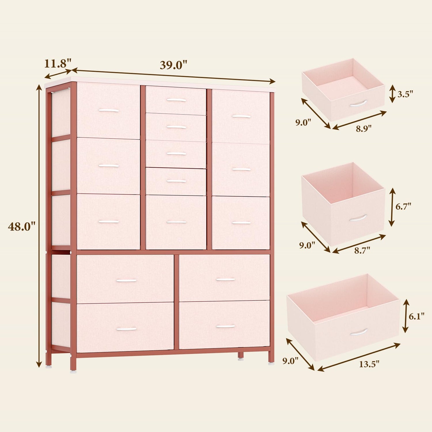 - 👗 Clutter Free: Discover the ultimate in space-efficient storage with our 15-drawer tall dresser. With drawers available in 3 different sizes, sorting and classifying your belongings is effortless.