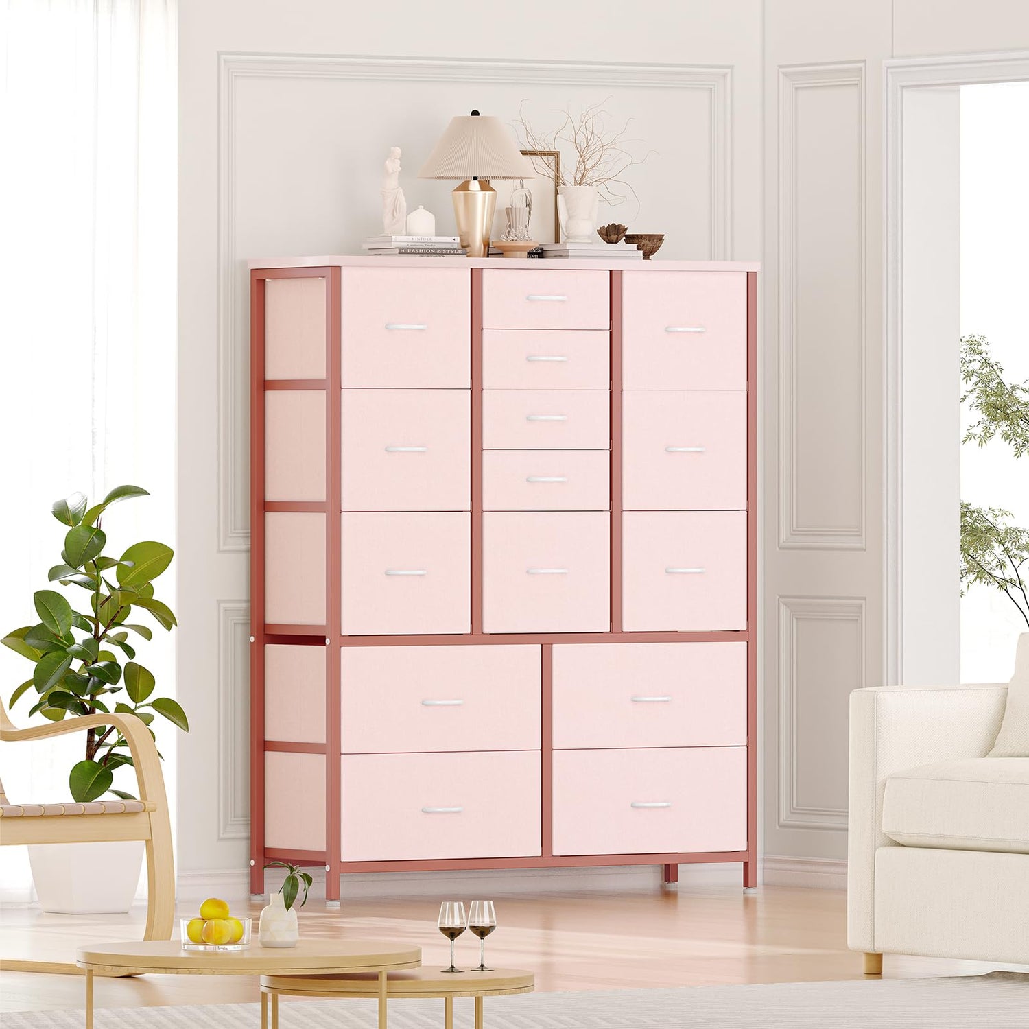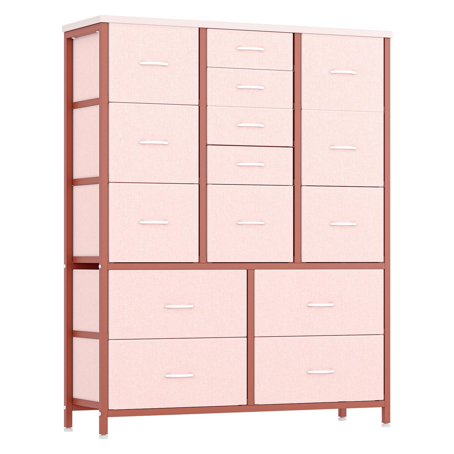 ElectraSpeedy 15 Drawers Dresser, Tall Dressers for Bedroom, Large Chests of Drawers, Fabric Storage Dresser Organizer Unit for Closet, Hallway, Living Room (Pink Wood Grain Print)