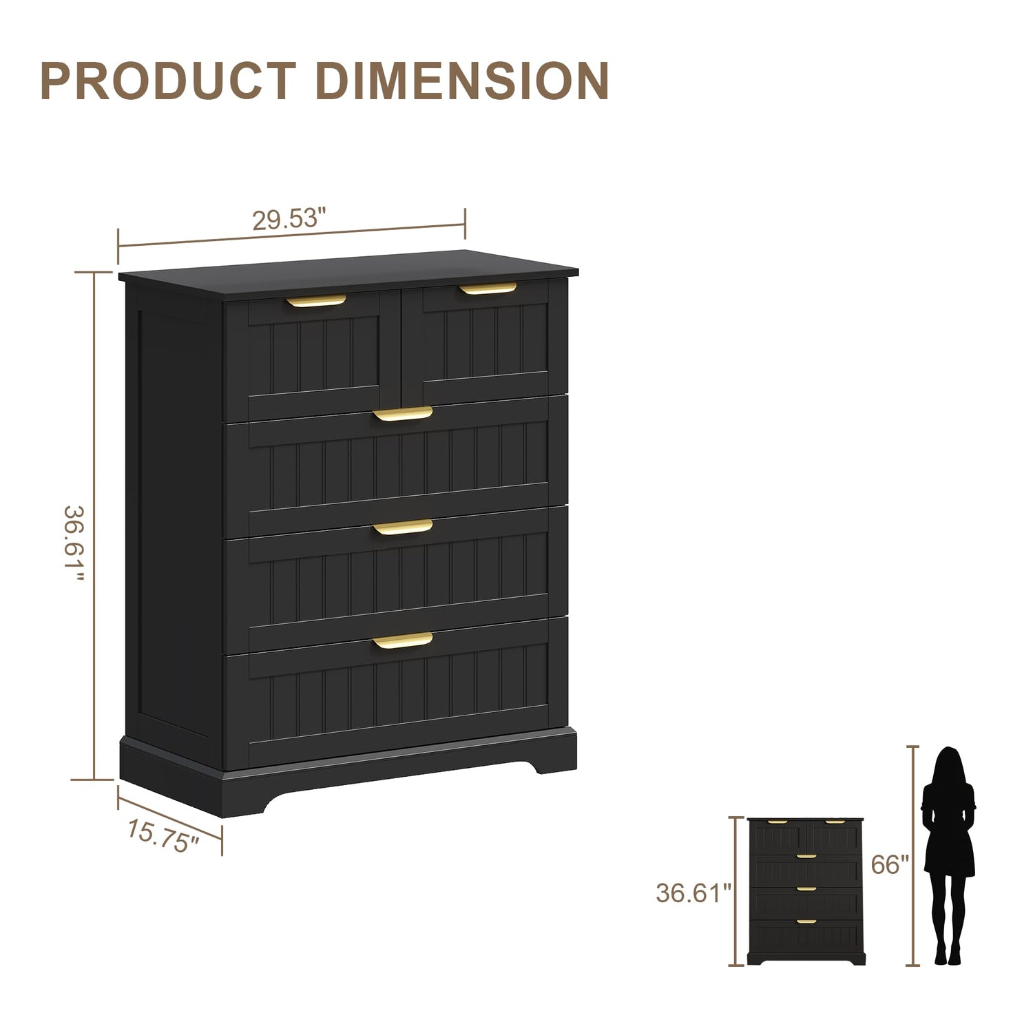 - Modern Farmhouse Style : Featuring a sleek black finish with vertical panel details, this 5-drawer dresser combines modern minimalism and farmhouse warmth, easily complementing various interior décor styles