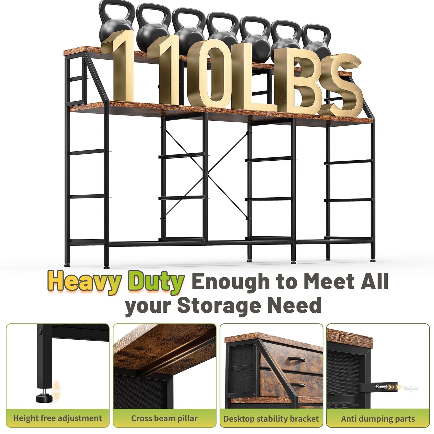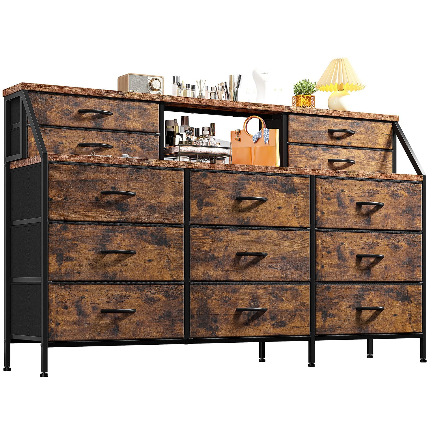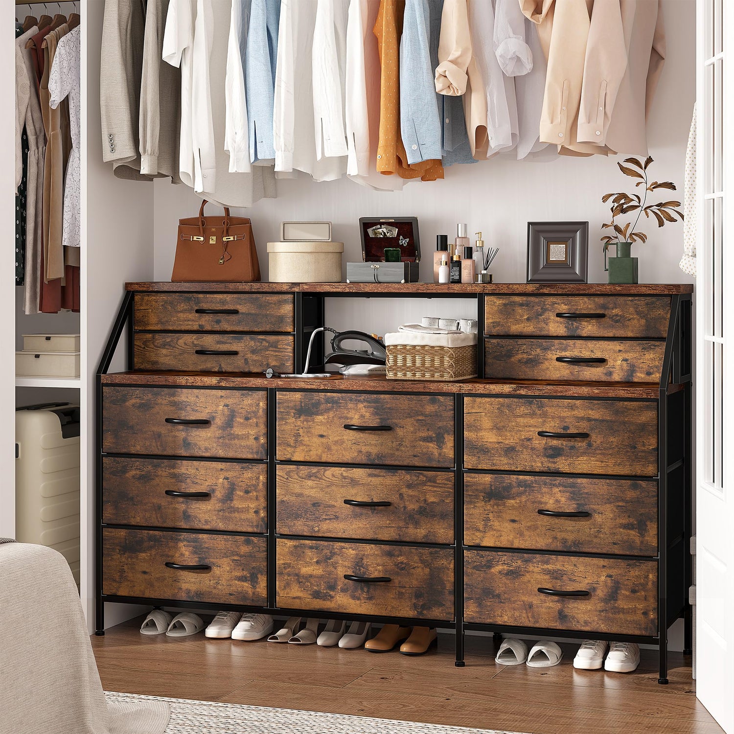 EnHomee 55”W Dresser for Bedroom, Dresser with 13 Large Drawer, Dressers & Chests of Drawers, Dressers with 2 Shelves, Bedroom Dresser, Long Dresser for Closet, Wooden Top Metal Frame Rustic Brown